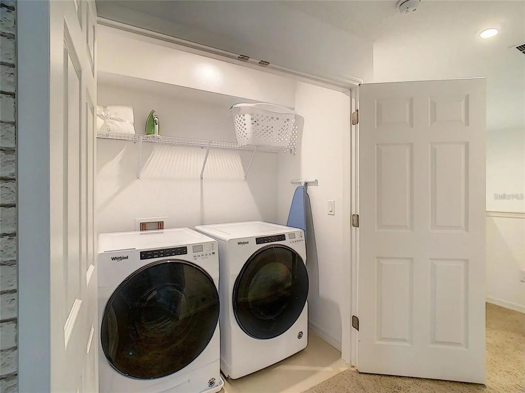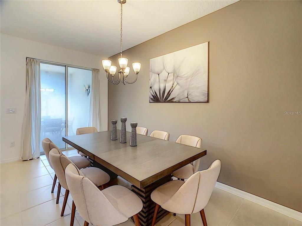 Step outside through the sliding glass doors to a covered patio overlooking a private, sparkling pool—perfect for soaking up the Florida sunshine. Ceramic flooring in wet areas, thoughtful décor, and professional furnishings elevate this home’s luxurious feel.