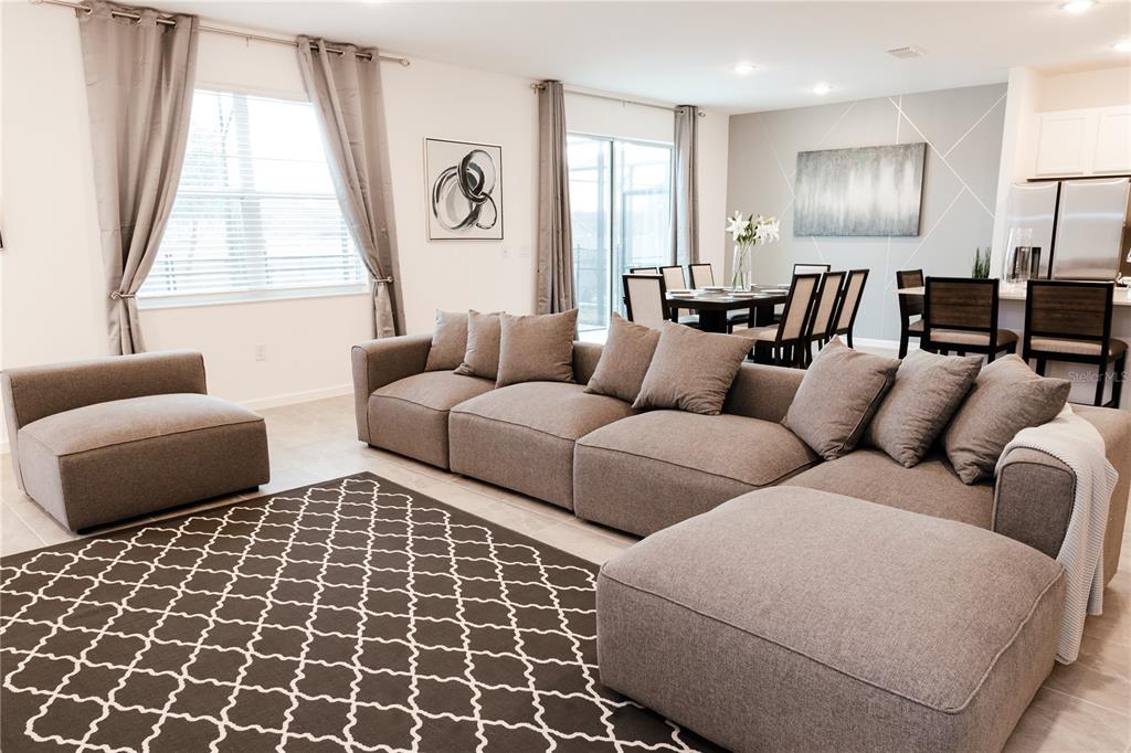 Located in the guard-gated Bellavida community, this spacious pool home offers a flexible layout suitable for a primary residence or investment opportunity. The open-concept main floor features tile flooring throughout the kitchen, living, and dining areas, creating a bright and functional living space with direct views to the screened pool area.