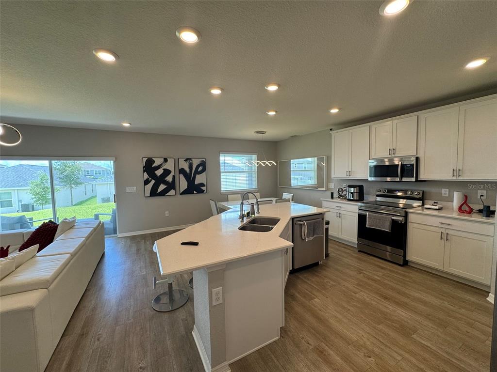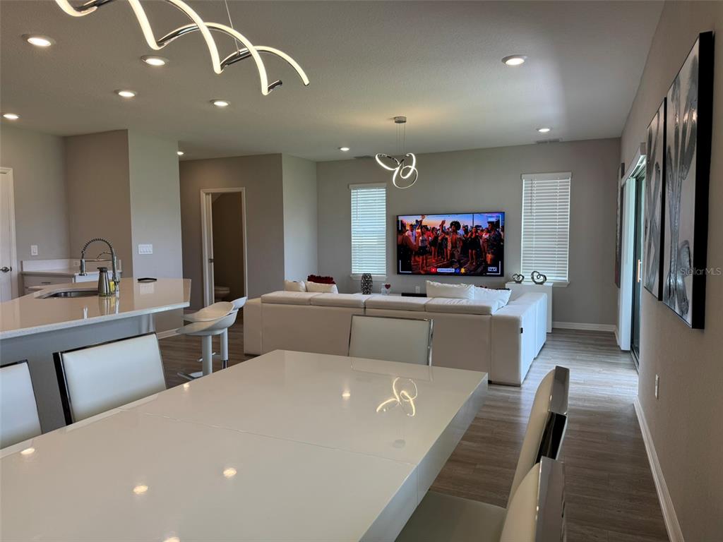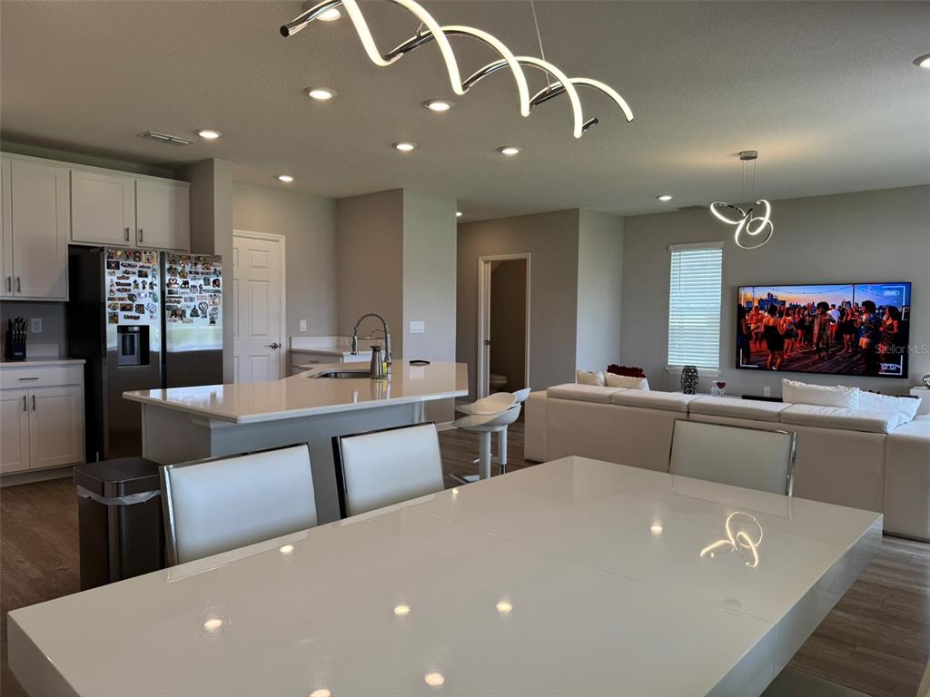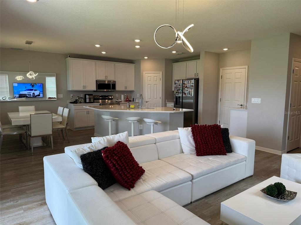 Step inside and be captivated by the open-concept layout, enhanced with designer light fixtures that add warmth and sophistication throughout. The heart of the home is the spacious kitchen, seamlessly connected to the living and dining areas—perfect for entertaining or relaxing with family.