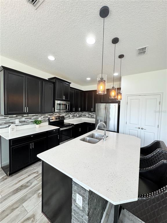 !!Check out this BEAUTIFUL, ENERGY EFFICIENT, two-story home with Solar Panels! Looking from the outside you can see the brick driveway with a matching back porch. Connected to the driveway is a roomy two-car garage, which leads directly inside. Walk through the front door and be greeted by the stairs and a hallway that opens into the beautiful living room and kitchen. The living room features a gray stone accent wall with an area built just for a TV. Throughout the downstairs of the home there is bright and colorful lighting all over the ceilings and in the kitchen. Within the kitchen there are stainless steel appliances, beautiful, stone back splash, dark 42″ cabinets, marble counter tops, and beautiful tile floors. In the living room the sliding glass doors open to the brick porch, with a stunning view of the back yard. Also downstairs, you can find one of the four bedrooms, a modern bathroom, and an extra room. Take the stairs and walk up to a spacious common area which connects to the master bedroom, the remaining two bedrooms, and another bathroom. The master bedroom is stunning and features a walk-in closet and a spacious and updated bathroom. This home is close to shopping, restaurants, and Disney Theme Parks!
