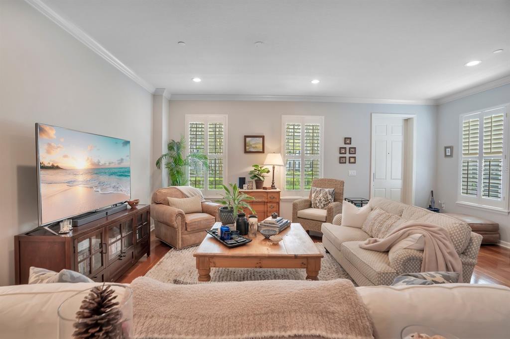 Stunning end-unit townhome in the heart of Baldwin Park, offering park views, an oversized private backyard, and over 2,000 square feet of beautifully appointed living space. The open layout features a formal living room and dining room, perfect for entertaining, along with a family room off the kitchen that keeps daily living connected and comfortable. The gorgeous kitchen showcases granite countertops and a dinette area, opening seamlessly to the family room with serene backyard views. Upstairs, the spacious primary suite impresses with a large professionally built-out walk-in closet and a luxurious en suite bath featuring a soaking tub and walk-in shower. A second bedroom, full bath, and a versatile bonus room — ideal as a home office, playroom, or easily converted to a third bedroom — complete the upper level. Every closet in the home has been custom built out for maximum function and storage.Outside, the backyard is one of the largest you will find in a Baldwin Park townhome. The 1,000 SF outdoor living area was fully remodeled in Fall 2024, featuring beautiful pavers, a composite deck, Tivoli lights, and a drip-feed irrigation system serving lush, beautifully landscaped planters. Exceptionally private and made for Florida living. A detached two-car garage completes the property. Additional upgrades include Brazilian Cherry engineered wood floors, crown molding, LED downlights, plantation shutters, and major recent improvements HVAC 2020 and a new water heater 2026 — this home is immaculate and truly move-in ready. Baldwin Park is one of Central Florida’s most beloved communities, offering resort-style pools, fitness centers, and an abundance of parks and playgrounds. The Village Center brings shops, restaurants, and a vibrant neighborhood energy right to your doorstep — all just minutes from downtown Orlando, Winter Park, and everything the region has to offer.