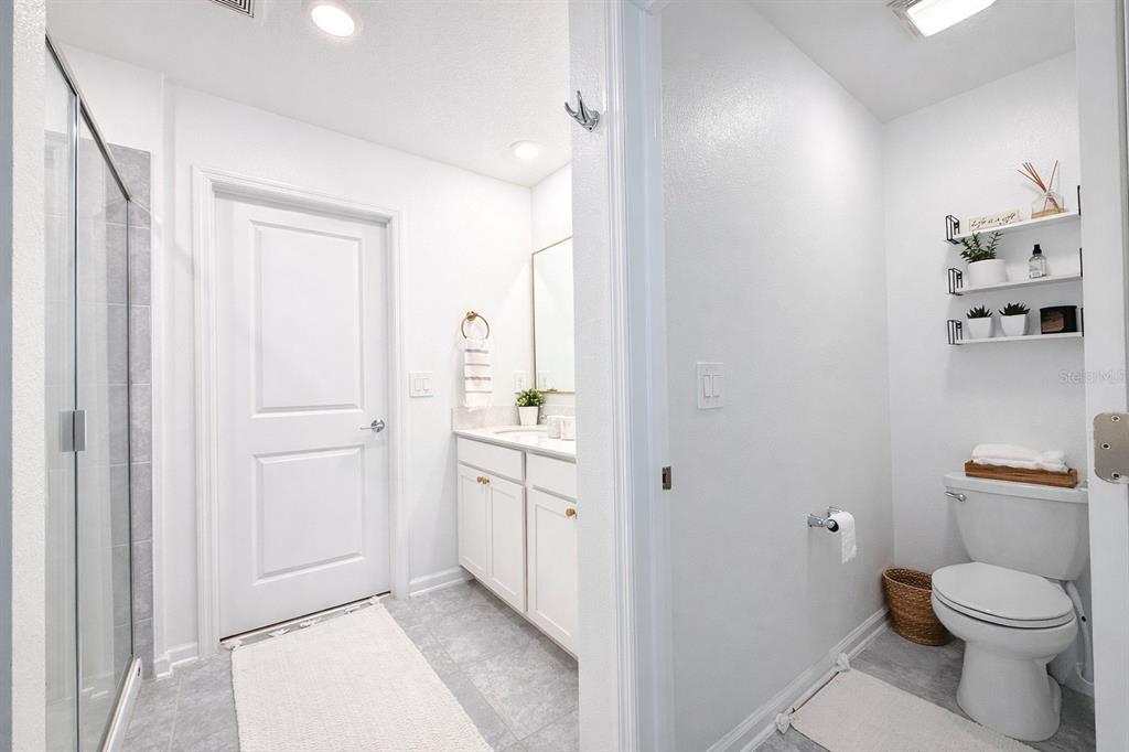 Outdoors you’ll find your own private oasis – a screened pool patio overlooking serene water views, surrounded by lush full landscaping that enhances curb appeal and creates a private resort-like feel at home. Practical upgrades include garage storage racks for organization and permanent exterior lighting for added aesthetic appeal and fun lighting year-round.