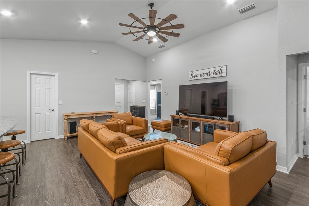 Short Sale. *** BANK APPROVED PRICE *** Welcome to 2311 Sunset Way, this is the desirable Peyton floor plan, an exceptional 4-bedroom, 2-bathroom home with a 2-car garage in the highly sought after Geneva Landings community. This like-new, move-in-ready home offers a blend of modern upgrades and comfort in a quiet, friendly neighborhood. Step into the open living area with a cathedral ceiling, recessed LED lighting, and luxury vinyl plank flooring. The eat-in kitchen boasts crown-molded 36″ white cabinets, granite countertops, a walk-in pantry, Stainless Steel appliances, and a breakfast bar, perfect for gatherings. Custom ceiling fans, pendant lighting, and a tile backsplash in the kitchen add a touch of elegance throughout. The spacious primary en suite bedroom features a tray ceiling and convenient pocket doors leading to the private bath. Carpeted bedrooms provide added comfort. Enjoy outdoor living on the covered front porch or the backyard lanai which is deal for relaxing or entertaining. Don’t miss this incredible opportunity, schedule your showing today!