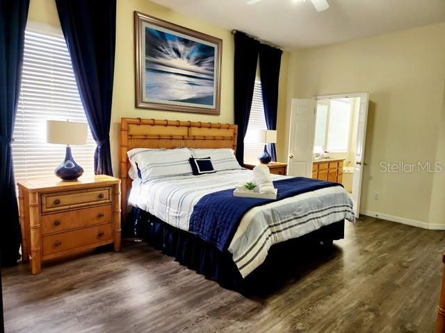 Welcome to Your Dream Home in Ridgewood Lakes! Step into this beautifully furnished and turn-key 4-bedroom, 2-bathroom home and experience a lifestyle of luxury and convenience. Nestled within Ridgewood Lakes community, this residence offers a seamless blend of comfort and style. Interior Features: Step into this inviting ambiance with spacious living areas, adorned with tasteful decor and versatile theme rooms, cater to various lifestyle needs. The Gourmet Kitchen is the heart of the home features granite countertops, a stunning new glass backsplash, modern appliances, ample storage, and a breakfast bar ideal for casual dining and entertaining. To finish the look, enjoy the new luxury vinyl wood plank flooring that enhances most of the home’s interiors. Roof and pool hot water heater were updated in 2020. New hot water heater was updated in 2024. Outdoor Oasis: Enjoy your own backyard retreat with a sparkling private pool surrounded by lush landscaping for utmost privacy. Ideal for sunbathing, BBQs, and outdoor gatherings with family and friends. Community Amenities: Exclusive to Ridgewood Lakes: Take advantage of world-class amenities including a public golf course, clubhouse, heated community pool, pickleball courts, tennis courts. Location Highlights: Close to all major theme parks, shopping, dining, and major highways, offering both convenience and access to a range of activities. Additional Information: A detailed list of upgrades is available upon request. 1. The TVs in the primary bedroom and family room do not convey. 2. The home is currently being used as a short-term rental; guest bookings may be transferred. This property isn’t just a home—it’s a complete lifestyle package. Don’t miss your chance to own a piece of paradise in Ridgewood Lakes!