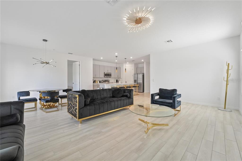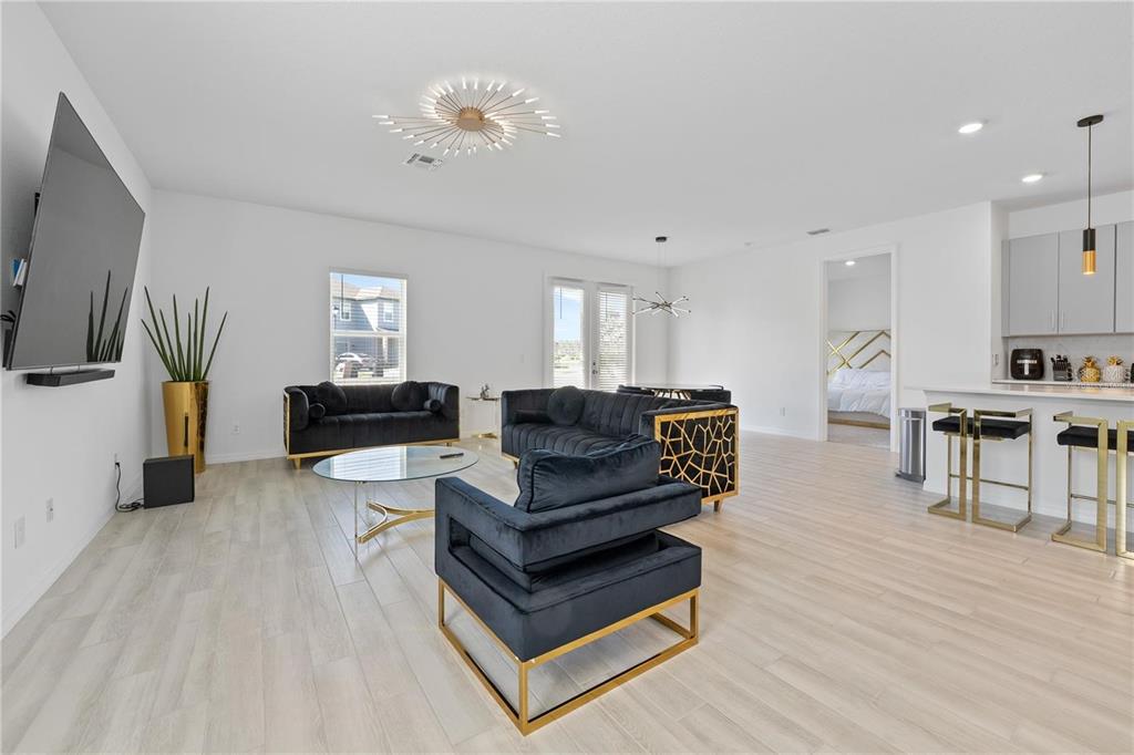 One or more photo(s) has been virtually staged. Short Sale. Short-sale process. One story single family home on an oversized corner lot in one of Davenport’s most desirable neighborhoods and resort-style living in Champions Gate. The modern interior features elegant ceramic plank tile flooring throughout, creating a seamless and stylish look. The gourmet kitchen boasts 42-inch cabinets providing ample storage, along with luxurious quartz countertops, stainless steel appliances – perfect for entertaining and daily living. 2-car garage. The property offers privacy and additional outdoor space, with a generously sized lot ideal for relaxation and activities. Conveniently located with easy access to the Enclaves Amenity Center, offering shopping, dining major highways, and just minutes from world-class theme parks and attractions. **Short term rentals are allowed, No rental restrictions**No HOA Approval needed.