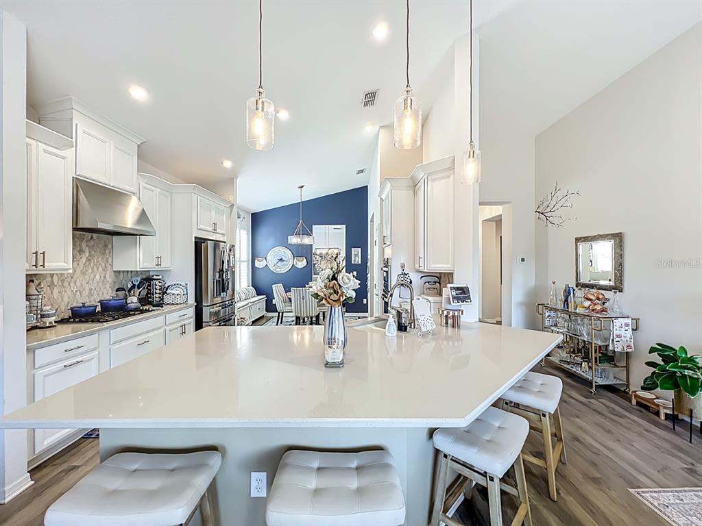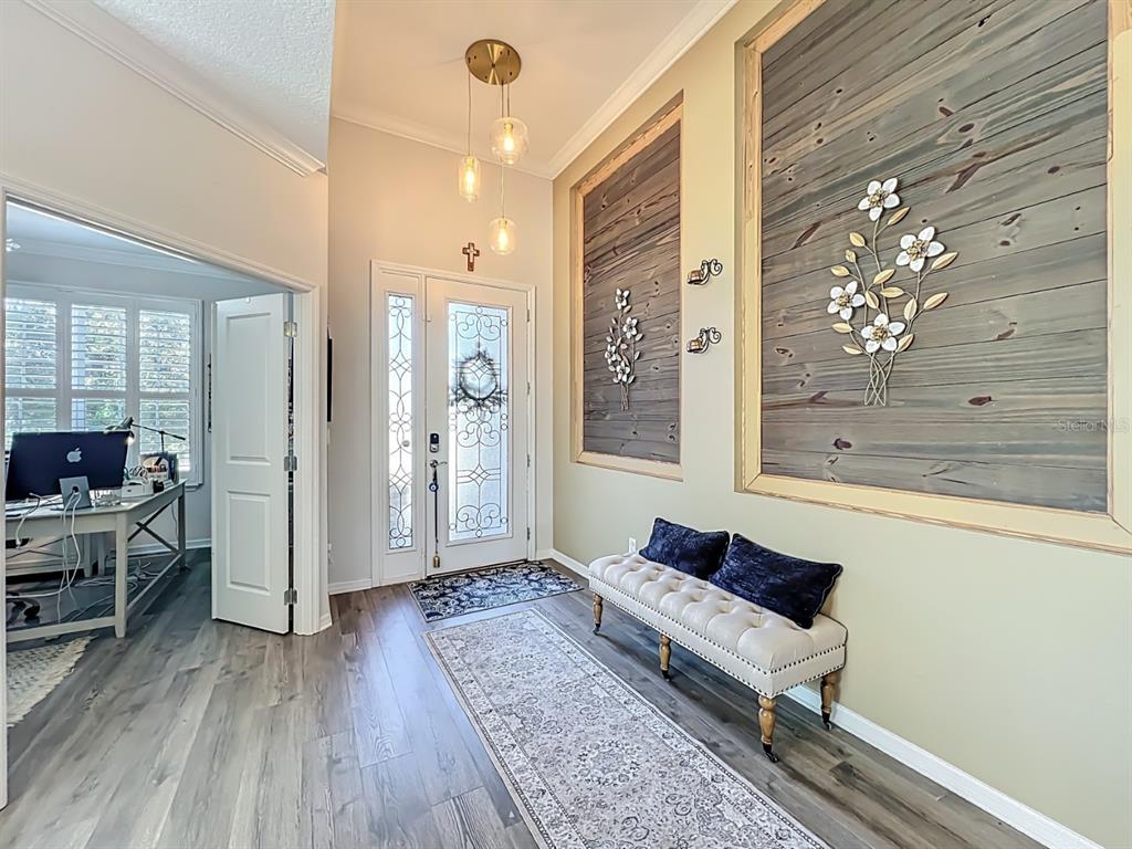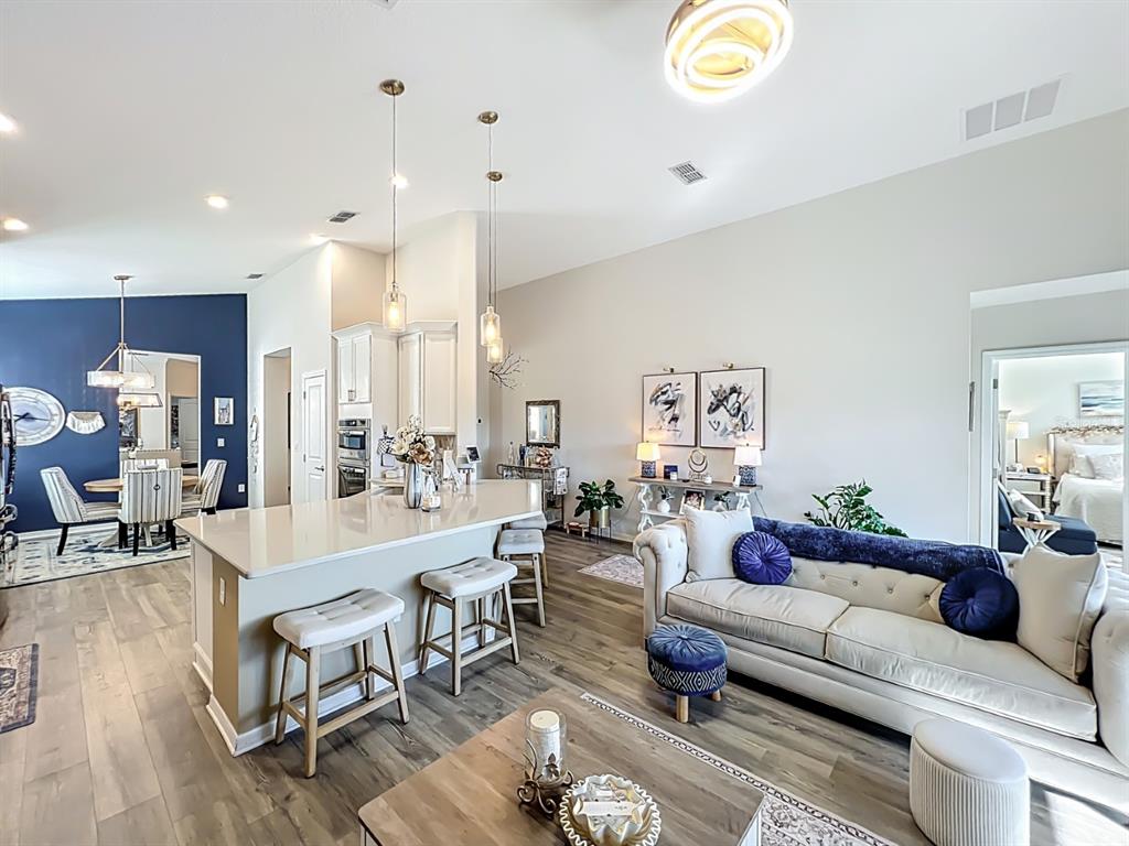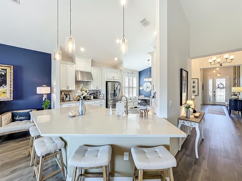 ** SPECIAL LOCATION ALERT ** Located on one of the most desirable and scenic homesites in Highland Ranch Canyons, this EXTREMELY WELL-UPGRADED HOME is only 5-years new and is sure to be at top of your buyer’s list ** The homesite truly sets this home apart! Your buyers will enjoy a PANORAMIC VIEW of a natural Conservation Area, and the rolling hills of Clermont, in a backyard oasis ** As you enter this beautiful home, you’ll find the Home Office at entry, with double-doors for privacy, and a trey ceiling w/crown offering elegance ** The large, Formal Dining Room is adjacent, with pass-thru to the kitchen ** The gorgeous Kitchen has a H-U-G-E Quartz countertop w/Breakfast Bar seating as the focal point – with trendy cabinetry including crown tops, built-in Oven, Microwave and Gas Cooktop with dedicated vent, and Large Casual Dining Area ** The Great Room is also H-U-G-E, and your view out the triple-sliders is the most beautiful, green conservation area & view you’ll see today ** The Primary Bedroom also has a trey ceiling with crown, with En Suite Bathroom featuring dual sinks, garden bath, dual closets, water closet and upgraded “seamless” shower enclosure. Upgraded Quartz countertops grace the vanity ** The spare bedrooms, located off entry foyer, share the well-upgraded secondary bathroom (tub w/shower) ** UNCOMMON UPGRADES & EXTRAS INCLUDE: PLANTATION SHUTTERS ON ALL WINDOWS, Gourmet Kitchen, extensive Crown Moldings, Quartz Counters throughout, remote-controlled SOLAR SHADE at Lanai, remote-controlled high-end Ceiling Fans with gorgeous lighting throughout, extensive wood laminate flooring, and seamless glass primary shower enclosure ** Best saved for last! Your buyers will LOVE the Premium Conservation Lot with elevated view that is to die for! The Large Covered Lanai adjoins the PAVER WALKWAY leading to the 25×15 PAVER PATIO. The “mobile fire pit” conveys, and some other outdoor furniture may be offered for sale ** Ring doorbell and other Ring devices do not convey. Rear lanai ceiling fan does not convey; will be replaced with the standard ceiling light fixture ** Room sizes are approximate and may be verified by buyers ** COMMUNITY AMENITIES INCLUDE: a Resort-style Pool w/open-air Cabana for gatherings, Splash Pad, Hot Tub, Playground, Sports Courts, 2 Dog Parks, Fire Pit, Walking Trails and more ** Highland Ranch is nestled in the rolling hills of Clermont, with scenic trails right outside the community entrance! For those that enjoy an active lifestyle, you’ll appreciate easy access to the South Lake Trail, with connections to the Lake Minneola Scenic Trail & West Orange Trail, with direct access to downtown Clermont & Winter Garden. Highland Ranch is conveniently located near the Florida Turnpike, SR 50 and SR 27 – offering easy access to major attractions, shopping, dining, and all points of central Florida ** BE SURE TO VIEW THE 3-D TOUR!
