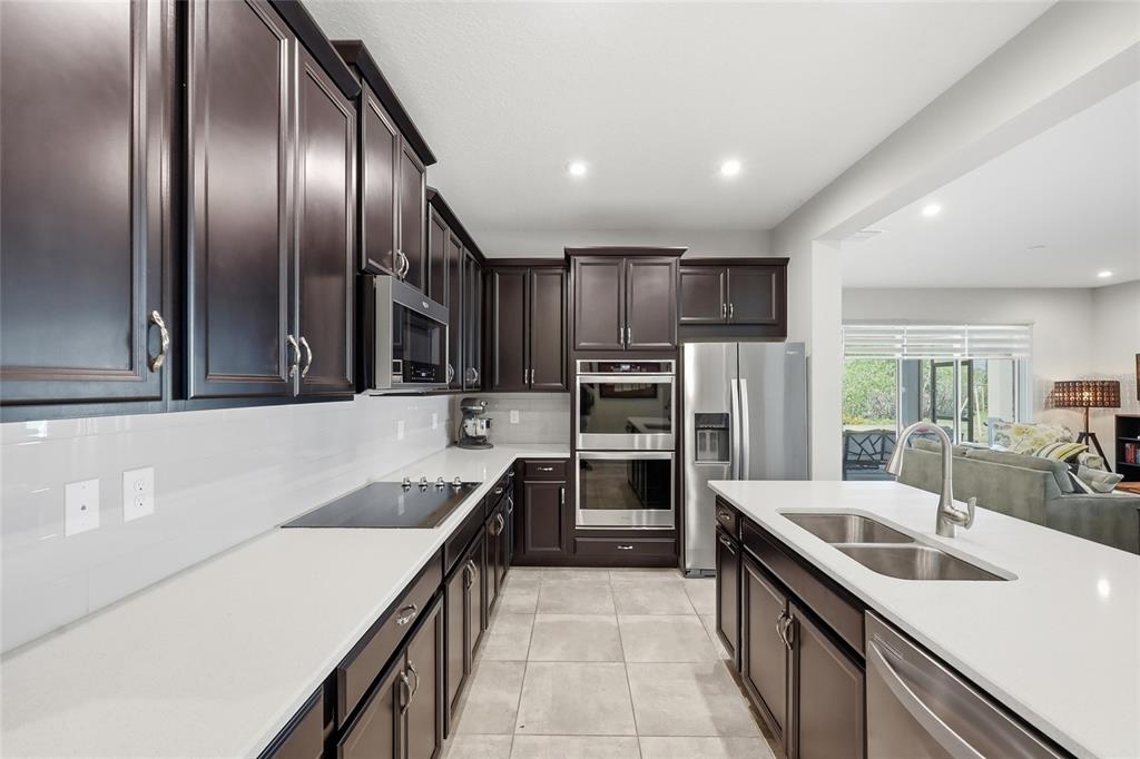 Wake up to quiet conservation views and come home to resort-style living in one of Kissimmee’s most sought-after communities—welcome to Tapestry. Better than new and beautifully positioned on a peaceful conservation lot, this thoughtfully designed 4-bedroom, 3-bath home blends modern style, comfort, and privacy into one exceptional living experience. From the moment you step inside, the open-concept floor plan is filled with natural light and anchored by tranquil backyard views that bring the outdoors in. We all know the heart of the home is the kitchen, and this stylish GOURMET KITCHEN is truly a chef’s dream—featuring abundant espresso cabinetry, a built-in double oven, smooth cooktop with microwave, quartz countertops, sleek finishes, and a layout that flows effortlessly into the living and dining areas. Perfect for both everyday living and entertaining. The primary suite serves as a peaceful, spa-like retreat, offering a soaking tub for luxuriating, a generous walk-in shower to wash away the cares of the day, and an expanded walk-in closet not to be missed. The thoughtfully designed split-bedroom plan includes a stylish foyer with a convenient stop-and-drop area for shoes and keys. Two front bedrooms share a Jack-and-Jill bath complete with a generous linen closet, while across the way, a beautifully appointed hall bath and fourth bedroom create the perfect space for a tucked-away office, playroom, or library—separate from the main entertaining areas. Exterior design features make a lasting first impression, including a Craftsman-style front elevation, a welcoming front porch, exterior stone accents, and an upgraded glass front door. But it’s the covered and screened lanai overlooking lush conservation that truly steals the show. Imagine starting your day with your favorite hot beverage while listening to the sounds of nature—this is Florida living at its finest. Why Tapestry? This gated, resort-style community is known for its exceptional amenities and vibrant lifestyle. Residents enjoy a stunning clubhouse, resort-style pool, fitness center, playgrounds, dog park, and scenic walking trails—along with convenient access to shopping, dining, major highways, and Central Florida attractions. Whether relaxing at home or enjoying the neighborhood, Tapestry offers a lifestyle that feels like a daily getaway. Priced at $500,000, this home delivers outstanding value, privacy, and modern living—without the wait of new construction. This is truly the Florida Dream. Call today for your private showing.