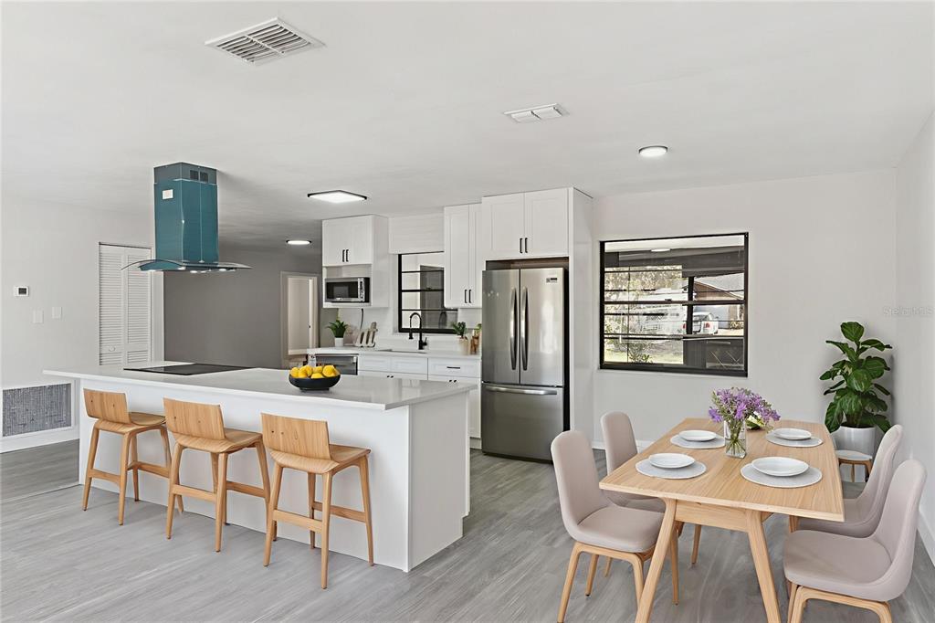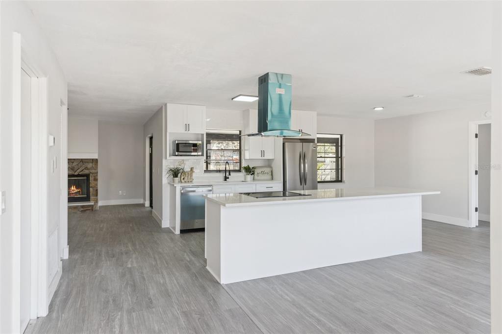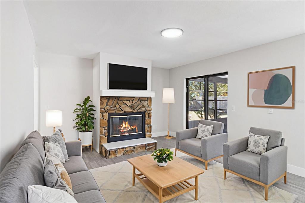 One or more photo(s) has been virtually staged. No HOA, Fully Renovated and Ready to Impress! This home has been extensively updated with a focus on clean design, modern finishes, and improved floor plan flow. Both the interior and exterior have been freshly painted, creating a crisp, cohesive look from the curb all the way through the interior. Inside, all flooring has been replaced with new waterproof vinyl, complemented by brand-new baseboards throughout for a sharp, finished feel. Walls were removed to open up the main living areas, allowing the front living room, dining space, and redesigned kitchen to connect seamlessly. The kitchen now features new cabinetry, new countertops, and all brand-new stainless steel appliances, giving the space a streamlined and functional layout that anchors the home. Toward the back, a separate living room offers additional flexibility and a wood-burning stone fireplace adds character and warmth. Sliding doors lead from this space to the expansive 23’ x 10’ covered and screened porch, extending the living area outdoors and providing an ideal setting for relaxing or entertaining year-round. Both bathrooms have been completely renovated with new cabinets, new countertops, updated fixtures, and modern finishes. The yard is fully fenced and the front landscaping has been refreshed following the recent freeze to enhance curb appeal. The garage features finished flooring, adding to the clean, well-maintained presentation. Major systems have been addressed as well, including a roof replaced in 2018 and an A/C system replaced in 2020. The water heater was replaced in 2012. Walking distance to many shops, schools and services this home is also located just a few minutes drive from Florida’s Turnpike, approximately 15 minutes to Orlando International Airport, and about 25 minutes to Disney parks and downtown Orlando. This home combines extensive upgrades with an exceptionally central Kissimmee location. Completely updated, thoughtfully redesigned, and on the market for the first time in four decades, 2533 Oak Run Blvd delivers modern living without HOA restrictions in a well-established neighborhood.