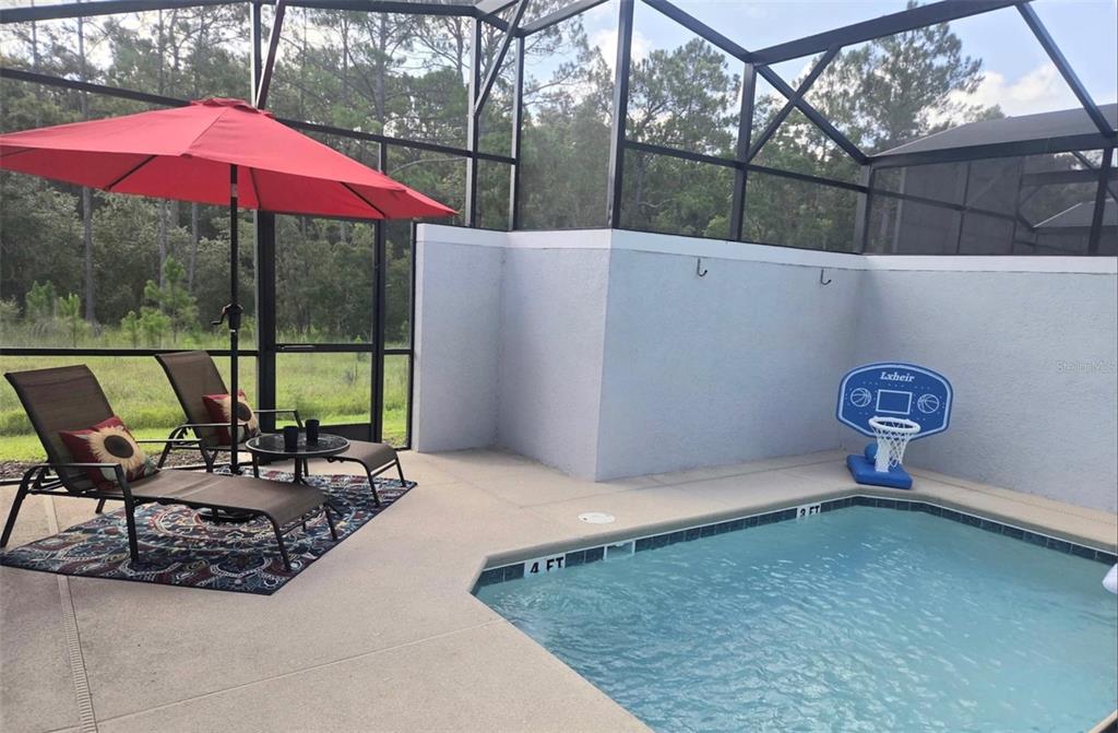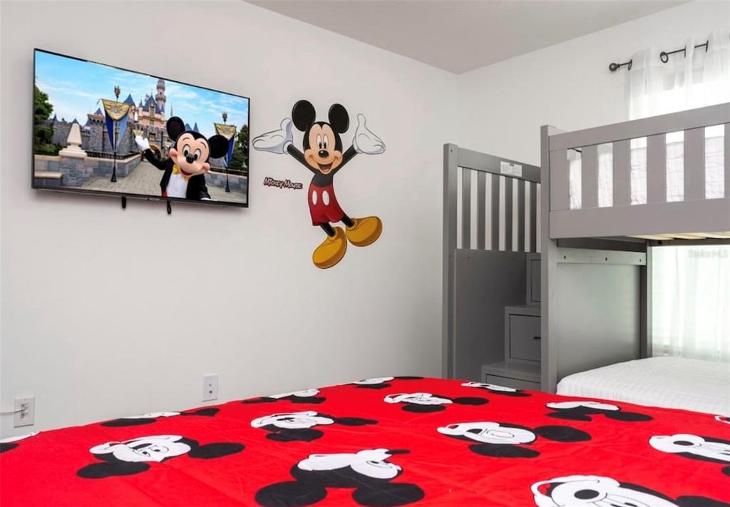 Best priced townhome with conservation views. This 4 bedroom, 3 bath townhome is located in the highly desired Storey Lake Resort. The home features a modern open layout with a fully equipped kitchen, spacious living and dining areas, and a private screened patio with pool. The first floor offers a guest bedroom and full bath, while upstairs includes a primary suite with ensuite bath and walk in closet plus two themed bedrooms designed for family enjoyment. Resort amenities include a clubhouse, pool, lazy river, splash pad, tiki bar, fitness center, spa, playground, mini golf, and sports courts. The property sleeps up to twelve guests, has an in unit washer and dryer, plenty of parking, and high speed internet. Conveniently located near Disney, Universal, shopping, dining, and major highways, this home is turn key ready and an excellent opportunity for vacation or investment use.