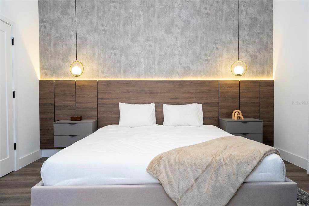 Fully upgraded from floor to ceiling, this luxury townhome blends contemporary elegance with high-end functionality — designed specifically for short-term rental success. Located in the exclusive Doppio Westside community in Kissimmee, just 15 minutes from Walt Disney World, this 5-bedroom, 4.5-bath home features an open-concept layout with spacious integrated living, dining, and kitchen areas that flow seamlessly to your own private heated pool. The kitchen is a showstopper with two oversized islands, Level 5 quartz countertops, designer backsplash, slatted wood detail, and Whirlpool stainless steel appliances. All cabinetry throughout the home includes soft-close features and matte hardware for a sleek, modern finish. Each of the five bedrooms is designed with comfort and rental flexibility in mind — including four full en-suites and one located on the first floor. The bathrooms are finished with high-end porcelain tile, glass shower enclosures, built-in niches, and vessel sinks in select locations. Luxury vinyl plank flooring runs throughout the entire home — no carpet anywhere — and 5.5″ square baseboards give a clean, elevated look. Additional features include PVC windows, a smart front door lock, a lockable owner’s closet, a hybrid water heater, thermostat, and 2 Car Parking Spot. Construction is full concrete block, including second floor, with an insulated “sandwich” roof system and rubber membrane roofing designed for durability and energy efficiency. Located within a gated community, Doppio Westside offers resort-style amenities such as a lagoon-style pool, full-service restaurant, clubhouse with front desk concierge, fitness center, playground, convention center, and EV charging stations — all exclusively zoned for short-term rental with no public school restrictions. Don’t miss this opportunity to invest in one of Central Florida’s most unique STR communities — fully upgraded as standard, and built with both guest experience and investor return in mind.