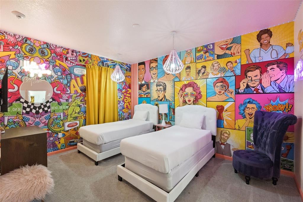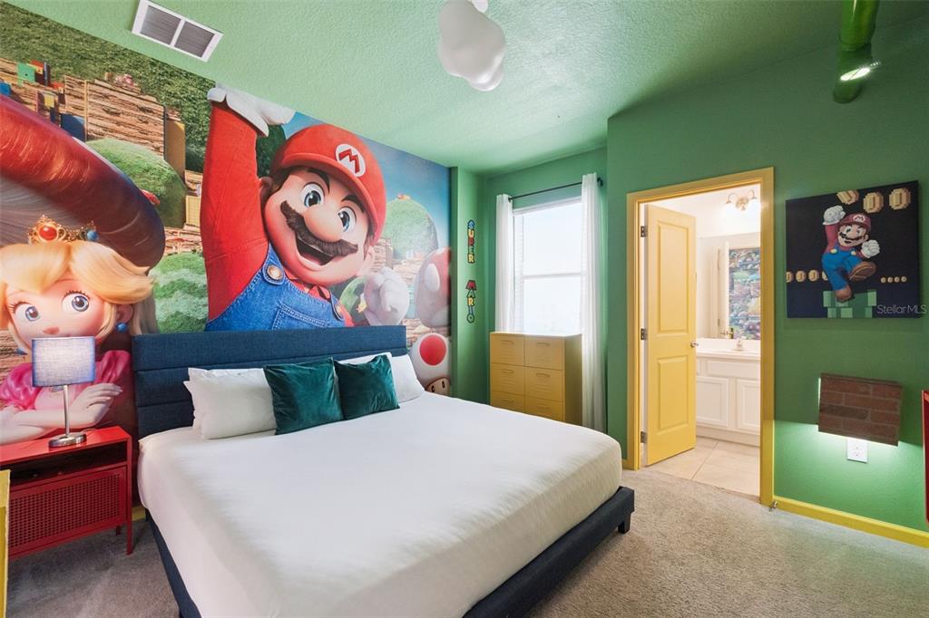 Experience the ultimate in Florida luxury at 262 Marcello Blvd, a stunning, fully furnished 12-bedroom, 11.5-bathroom estate located in the prestigious gated community of BellaVida Resort. Designed to captivate, this property is a short-term rental powerhouse and a dream for large families alike. The interior boasts an array of expertly themed rooms, including immersive Mario, Star Wars, Mickey, Comics, and Encanto spaces, plus a Harry Potter room complete with a custom bed slide. Entertainment is endless with a private theater room and a professionally converted garage game room, while the screened-in lanai features a sparkling private pool and hot tub for soaking in the sunshine.Beyond the doorstep, BellaVida Resort offers world-class amenities, including a 6,700-square-foot clubhouse, resort-style pool, fitness center, basketball and volleyball courts, and a scenic 15-acre lake with walking trails. This prime location puts you minutes from Walt Disney World, Universal Studios, and top-tier dining and shopping along the US-192 corridor. Whether you are an investor looking for a high-yield vacation rental, a primary buyer seeking a spacious sanctuary, or a second-home owner wanting a slice of the magic, this turnkey property offers the perfect blend of location, luxury, and themed excitement