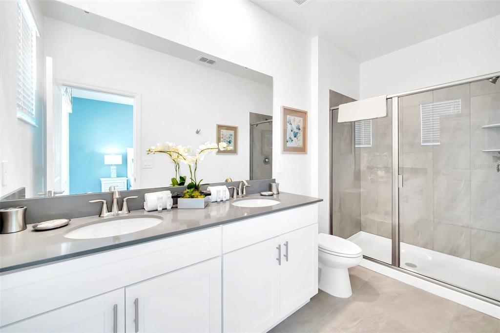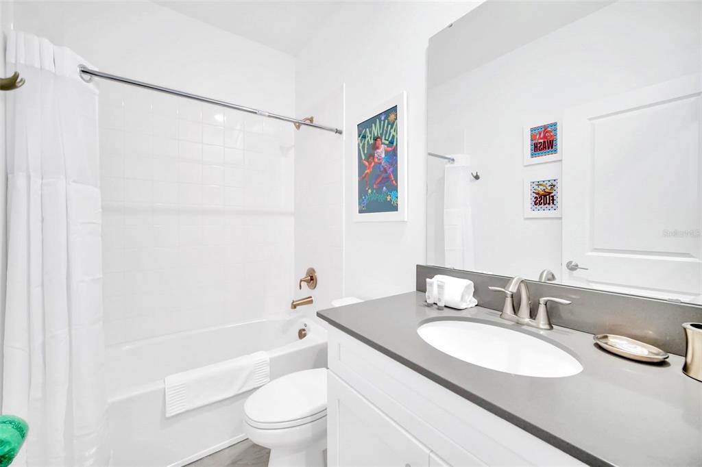 Inside, the home features a bright and functional floor plan with a large living area, modern kitchen with stainless steel appliances, solid-surface counters, solid wood cabinetry, and generous dining and gathering spaces. Multiple bedroom suites provide flexibility and comfort for owners and guests alike, and the fully furnished setup offers a convenient move-in-ready opportunity. A first-floor game room adds to the home’s versatility and enjoyment.