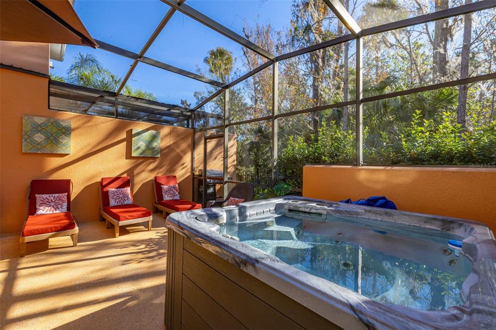 The interior reflects pride of ownership with a fresh palette of new paint throughout, complemented by a stylish mix of vinyl plank and tile flooring. The heart of the home features a well-appointed kitchen with granite countertops, quality wood cabinetry, and stainless steel appliances accented by a gorgeous backsplash. Upstairs, you will find two generous master suites, providing privacy and comfort for owners and guests alike, along with the added convenience of a brand-new washer and dryer.This home has been meticulously maintained with a focus on longevity and comfort. Key updates include a brand-new air conditioning system equipped with a UV light air-purification system for fresh air, brand-new electrical outlets, and contemporary ceiling fans installed throughout. The property comes completely furnished and decorated, allowing for a seamless transition. The outdoor living space is a true highlight, featuring a screened-in back lanai that houses a private 5-person jacuzzi—the perfect place to unwind after a day at the parks. The patio offers a quiet retreat backing up to a lush conservation area with no rear neighbors to interrupt your peace. Beyond the home, the gated resort provides a vacation lifestyle with a tropical pool, fitness center, billiard room, arcade, and an on-site restaurant and bar. Whether you are looking for a primary residence or a strategic investment in the heart of Florida’s tourism corridor, this home offers the location and upgrades you’ve been searching for. Make this your new home today and schedule a showing.