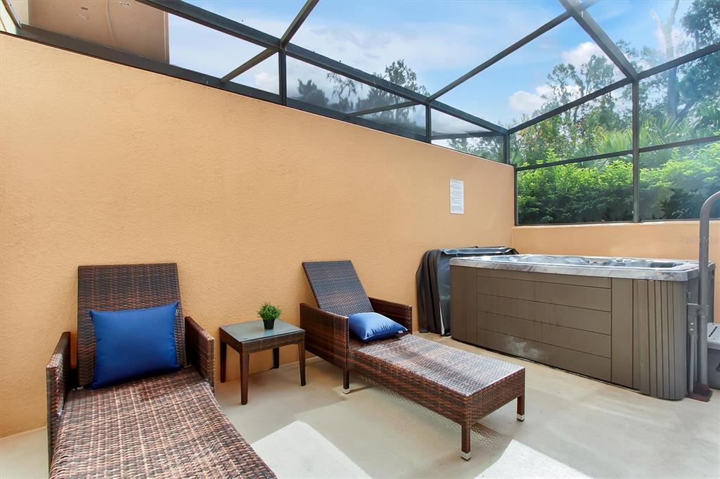 Stunning 2 bedroom 2.5 bath townhome in the very popular gated community of Regal Oaks. Minutes from Walt Disney Resort, restaurants and shopping. Open floor plan main floor with granite counter top kitchen, laundry and powder room. Freshly painted interior with accent walls. Turnkey furnished with contemporary furnishings. Fully equipped kitchen. Sliding doors to very private over sized lanai with heated hot tub. Second floor with 2 ensuite bedrooms and baths. Top of the line amenities with resort style zero entry pool, water slide, pool bar and cabanas. State of the art Clubhouse with restaurant, lounge, games room, fitness center, convenience store and tennis court. This stunning upgraded deluxe townhome is an investment opportunity in the highly sought-after gated community of Regal Oaks at Old Town. With professional property management already in place, it offers a hassle-free ownership experience and rental potential. Please note, this property is specifically tailored for investors seeking a rental asset.