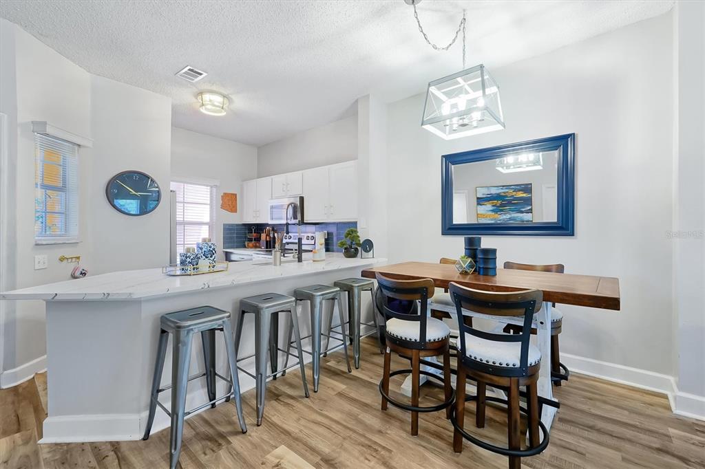 Exceptional investor opportunity or discover your dream getaway in the stunning Emerald Island Resort! This townhouse is located behind the main security gate, only a few steps from the clubhouse. There are 3 spacious bedrooms and 2.5 bathrooms. The open-concept design seamlessly connects the living room, beautiful newly remodeled kitchen, and dining area, all enhanced by high ceilings creating a bright and airy ambiance. This gorgeous townhouse is being sold furnished, beautifully appointed, making it a perfect turnkey investment, (zoned for short term rental), primary or second home opportunity! Enjoy the resort’s amenities, including two community pools, a clubhouse with indoor/outdoor tiki bar, tennis, pickleball, basketball, and volleyball courts, mini golf, sauna, exercise room, and a serene nature/walking path. HOA fee includes high speed fiber optic internet (500 mbps up/down) digital cable TV, daily trash pickup, all landscaping, use of amenities, 24/7 gated security, maintenance of exterior of property. Ideally situated less than 5 miles from Walt Disney World and less than a mile to Margaritaville restaurants and shopping area, this property offers the perfect blend of luxury and convenience. This will not be on the market long, so schedule your showing today and don’t miss out on this great opportunity!!