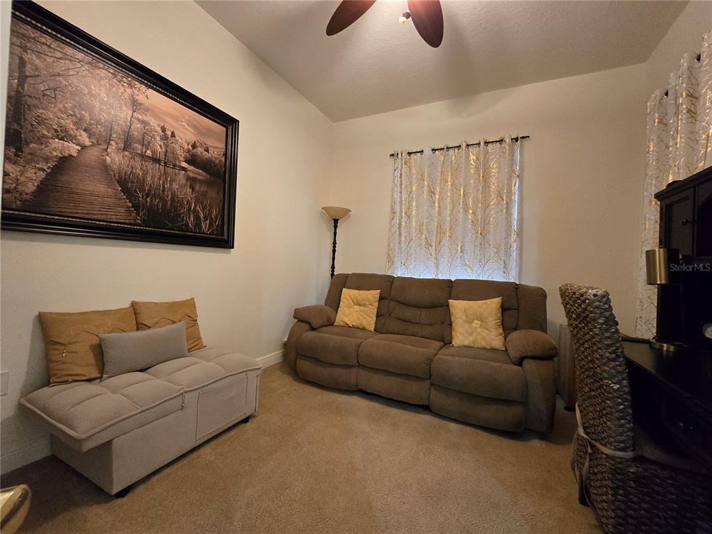 BEAUTIFUL BOCA RATON MODEL HOME in 55+Solivita on a CONSERVATION LOT. This 2 bed/2 bath +Den offers a very open floor plan. There are many upgrades in the home to include an upgraded front elevation, 8 ft doors, rounded corners on walls, 5 1/4 baseboard, laundry room with cabinets and sink, washer & dryer. In the kitchen, you have a nice breakfast bar, cabinets with slide-out drawers, a backsplash, a newer microwave, and a stove. There is a wonderful, LARGE SCREEN ROOM overlooking the peaceful wooded conservation lot. NEW ROOF in 2025! The FURNITURE IS NEGOTIABLE if you want to move right in and start enjoying this beautiful community! The HOA includes High-Speed Internet, Streaming TV, Lawn & Shrub maintenance, Irrigation, Guard-Gated Security, and Amenities. This fabulous community has 14 heated pools, 1 is indoors, 2 fitness centers, pickleball, tennis, art studios, a billiards room, 2 golf courses, a dog park, a softball field, and over 200 clubs. There are also 3 restaurants on-site to enjoy. New stores and restaurants across the street! COME ON, ENJOY THE RESORT LIFESTYLE at SOLIVITA!