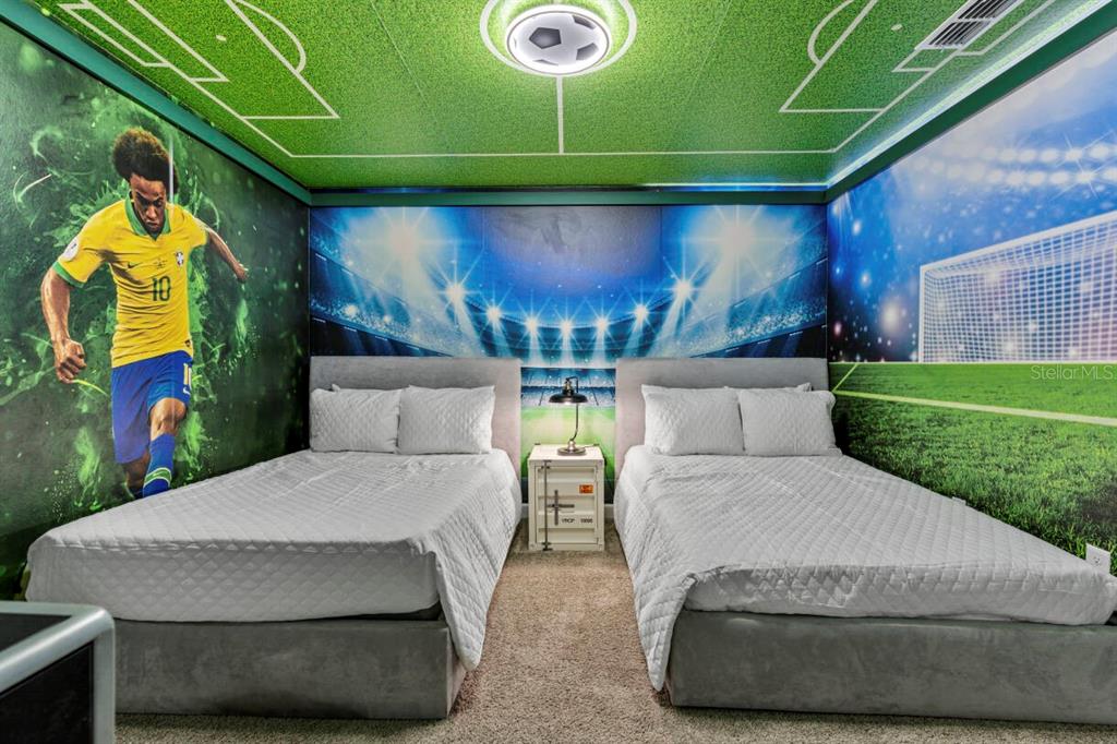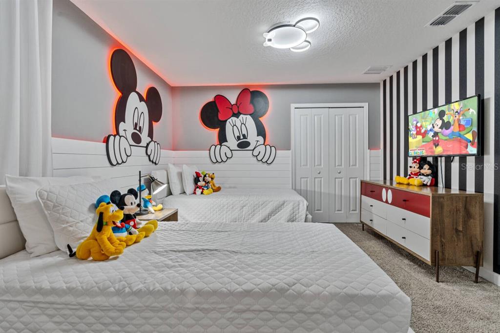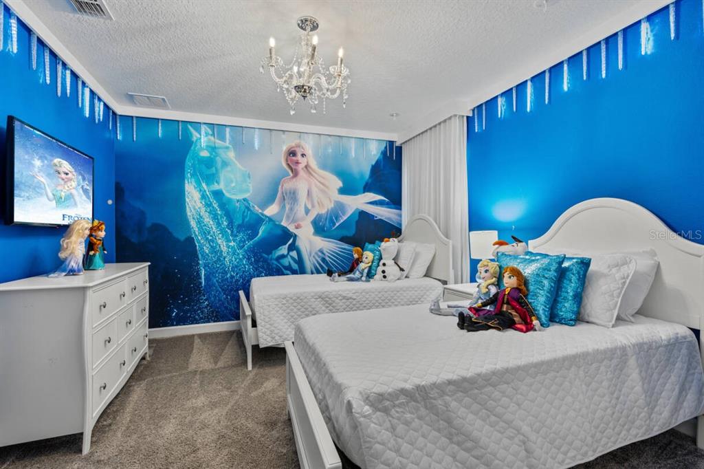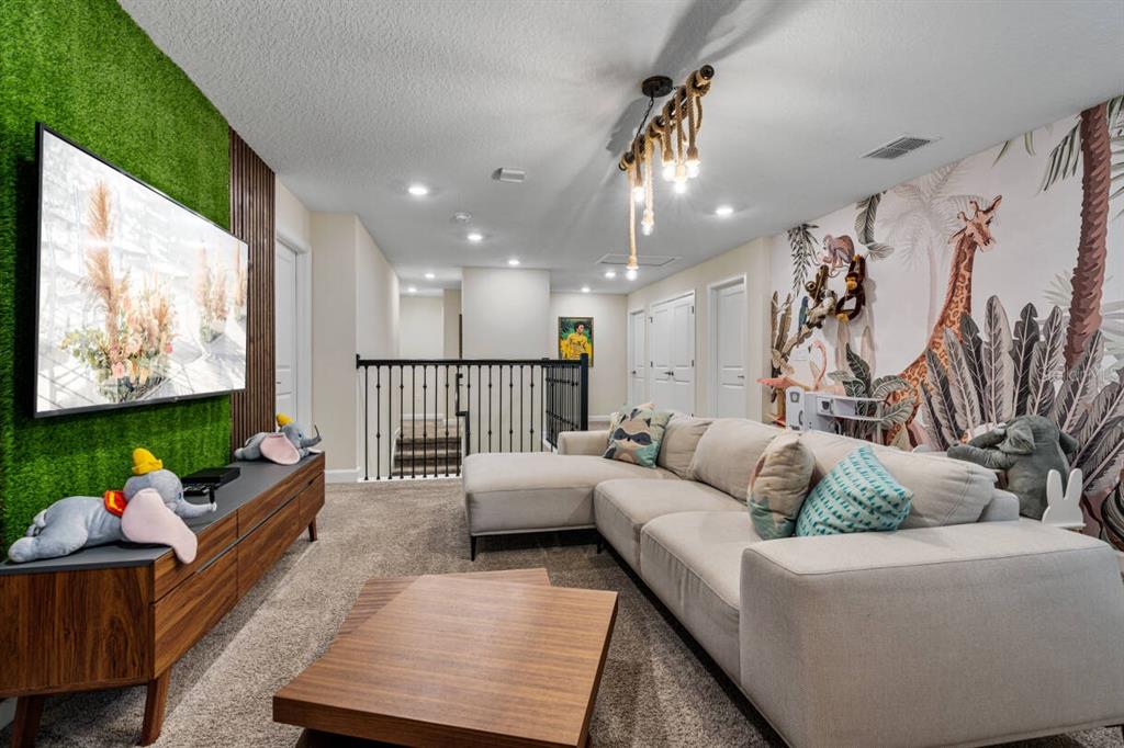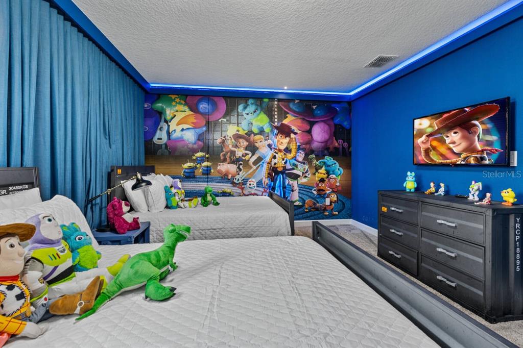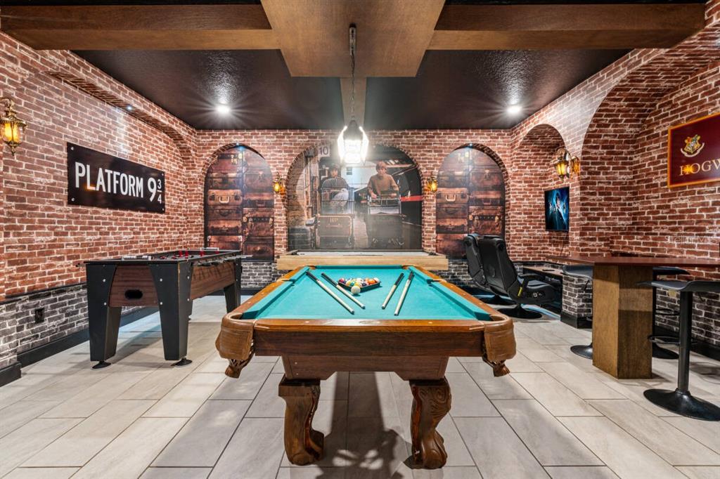 Welcome to this 8-bedroom, 5-bathroom luxury residence located in Storey Lake Resort in Kissimmee. Thoughtfully designed for short-term rental or multigenerational living, this home features a private screened pool and spa with no rear neighbors, a spacious open floor plan, multiple gathering areas, a themed game room (Harry Potter) and four themed bedrooms (Toy Story, Soccer, Frozen and Mickey). Storey Lake offers resort-style amenities including a water park with lazy river and slides, fitness center, clubhouse, sports courts, and 24-hour gated security. Just minutes from Disney, shopping, dining, and major highways, this property combines exceptional comfort with prime location for both owners and guests.