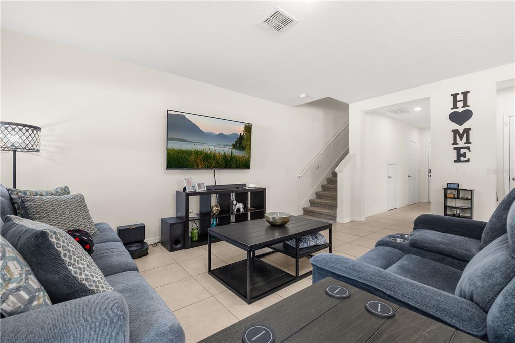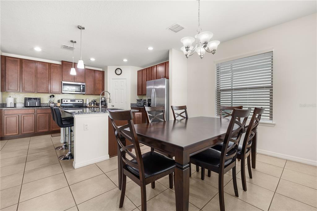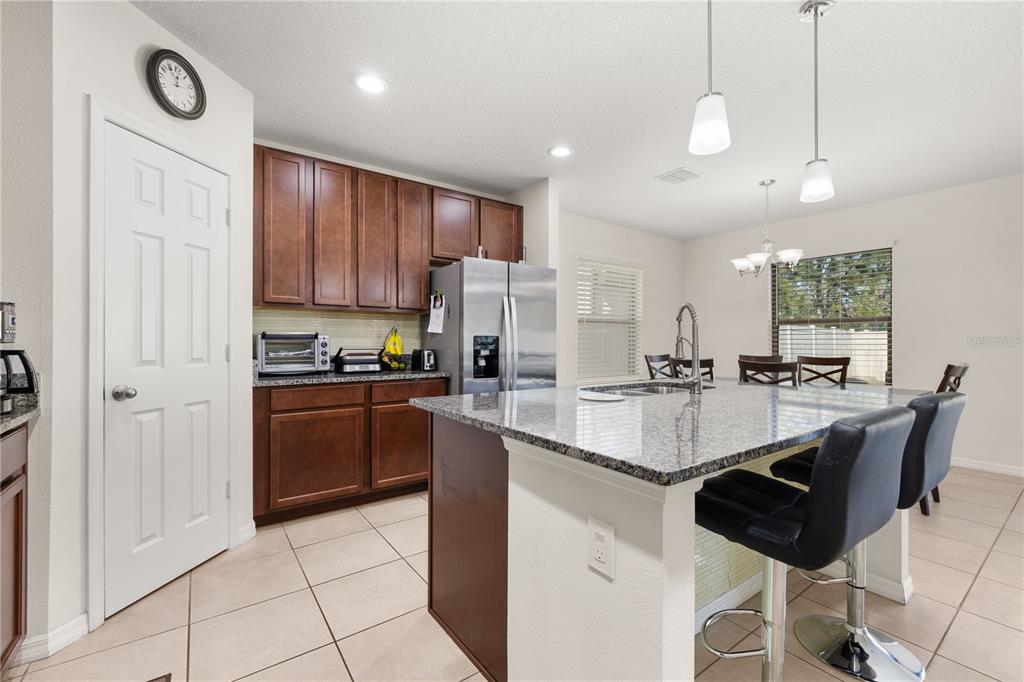 Elegance at its best! This impeccably maintained home offers 1,883 sq ft of heated living space with a spacious open layout and oversized great room ideal for everyday living and entertaining. The kitchen features granite countertops, 42-inch cabinets, a stylish backsplash, ample storage, and an oversized island perfect for gatherings. Ceramic tile flows throughout the first floor and wet areas, with comfortable carpets in the bedrooms. A convenient half bathroom is located on the first floor. At the same time, upstairs you’ll find the laundry area and a generously sized primary bedroom complete with a spacious walk-in closet and primary bathroom featuring a large walk-in shower. A whole-house water softener/filtration system is included. Enjoy outdoor living in the fully fenced, spacious backyard with a concrete slab patio, plus a paver driveway that enhances curb appeal. The enhanced 2-car garage includes built-in cabinets and shelving for extra storage and organization. Located in a well-maintained community with a playground, a dog park, a community pool, and no CDD, and ideally situated approximately one mile from Osceola Parkway, about 3 miles from FL-417, and roughly 8 miles from Orlando International Airport.