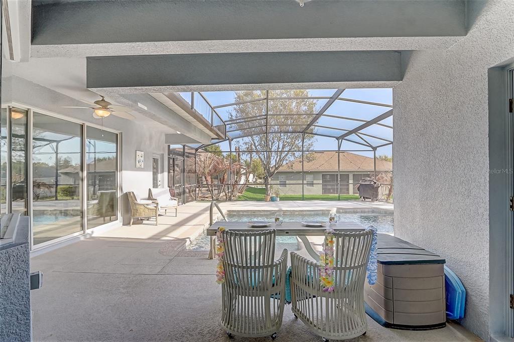 pool. Entertain in this beautiful 4 bedroom and 3 bath home. Freshly painted inside and out and 1 yr. old roof. This will be the destination for family and friends. The open concept floorplan that opens to the pool from the primary suite, living room and family room. No tracking through the house in wet swimsuits, the second bath opens to the pool deck. Fresco dining and the changing of the color pool lights will be memorable times. Put on your dancing shoes, it time to dance in the clubhouse ballroom. Great fun to be had indoor at the game room, arts and crafts, the gym or outside in the heated Olympic size pool. Tennis and so much more. The next best thing to a golf community is having several golf courses within 5 min. of home. Clermont has restaurants and lake side dining and entertainment. The National training center has Olympic size pool, gym, classes, therapy and more across from the Orlando Hospital. There are hiking and bike trails along with regular competition events. But finally your dog with love you as you walk the Heritage hills community paths and go to the doggie park. Take an evening stroll and watch the Disney firework from a distance at the overlook park.