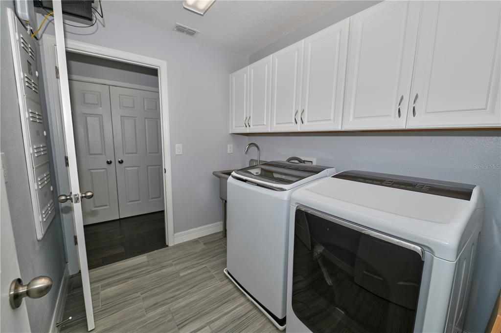 The first floor also includes new luxury vinyl plank flooring and a bedroom with an adjacent full bathroom, ideal for guests or multi-generational living.