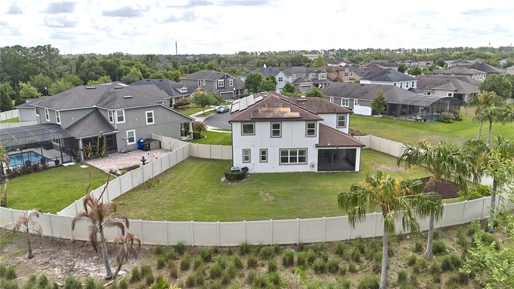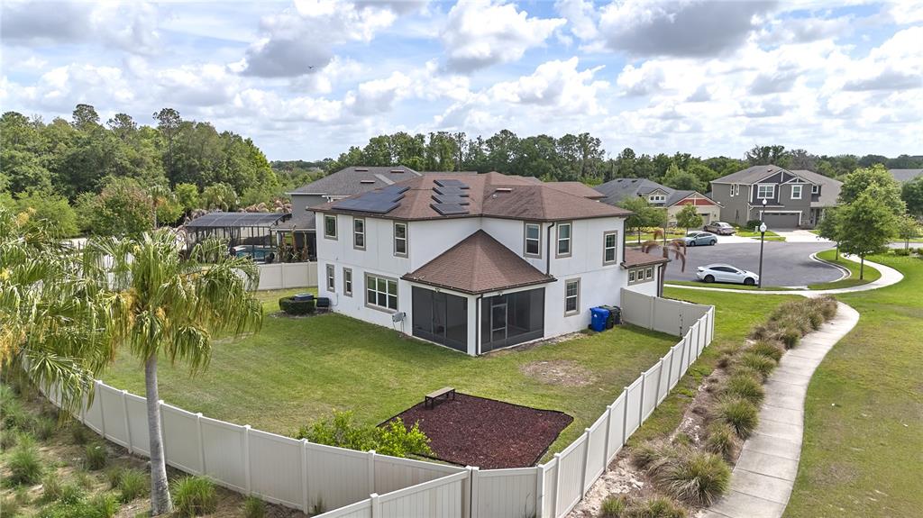 This home offers a total of 5 bedrooms, 4 bathrooms, and a 3-car tandem garage. Enjoy outdoor living in the covered and screened lanai overlooking the expansive backyard. The home is also equipped with a Tesla solar panel system and 2 Tesla Powerwalls installed in 2019, designed to help reduce electricity costs (system is financed).