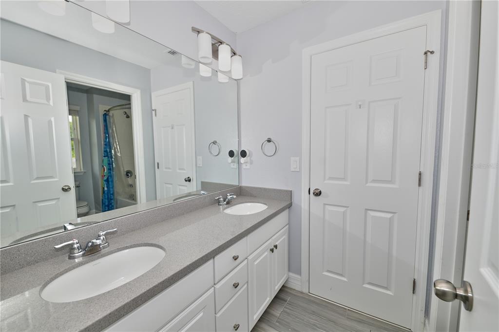 Upstairs, you will find a spacious 12×19 loft, perfect for a second living area or office. The primary suite features a custom-designed walk-in closet and a large en-suite bathroom with dual vanities and an upgraded walk-in shower. The second and third bedrooms are connected by a convenient Jack-and-Jill bathroom, while the fourth bedroom is located near an additional full bathroom, offering comfort and functionality for family and guests.