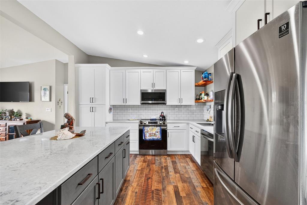 At the heart of the home, the kitchen has been fully updated with stainless steel appliances, granite countertops, and soft-closing cabinets, making it as practical as it is elegant. Each bathroom has also been beautifully renovated with granite counters, upgraded finishes, and a fresh, modern look, providing a true move-in-ready experience.