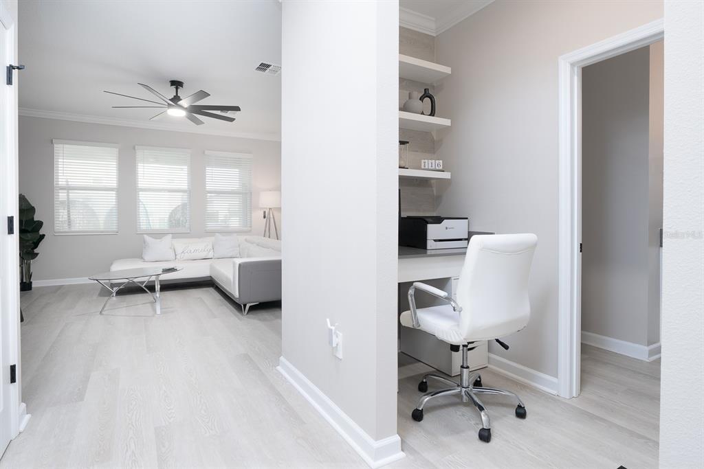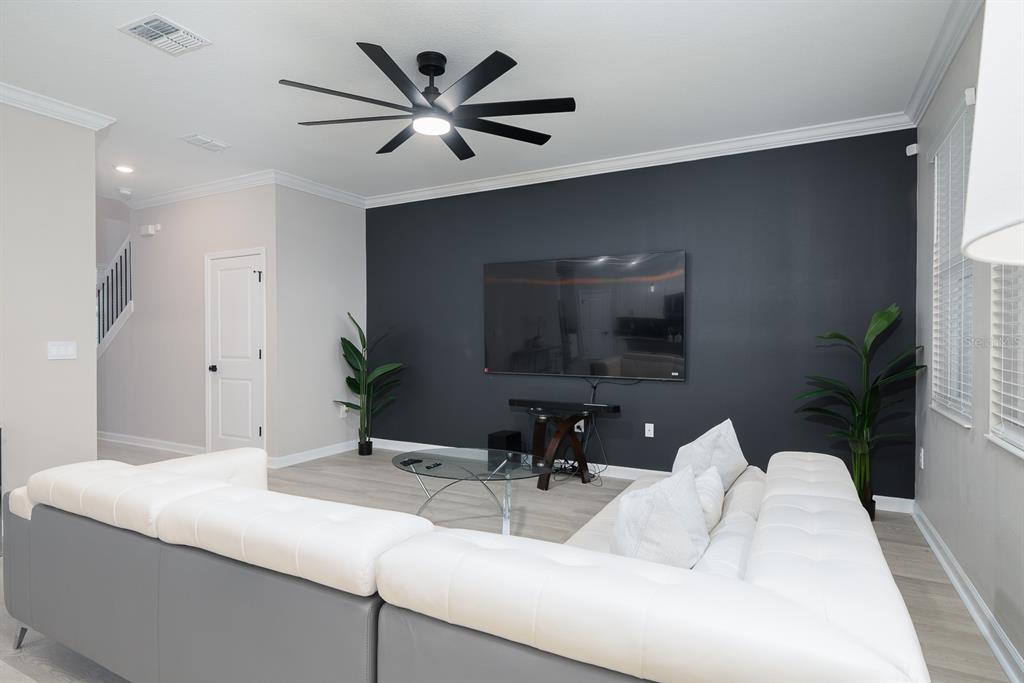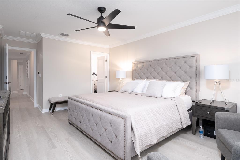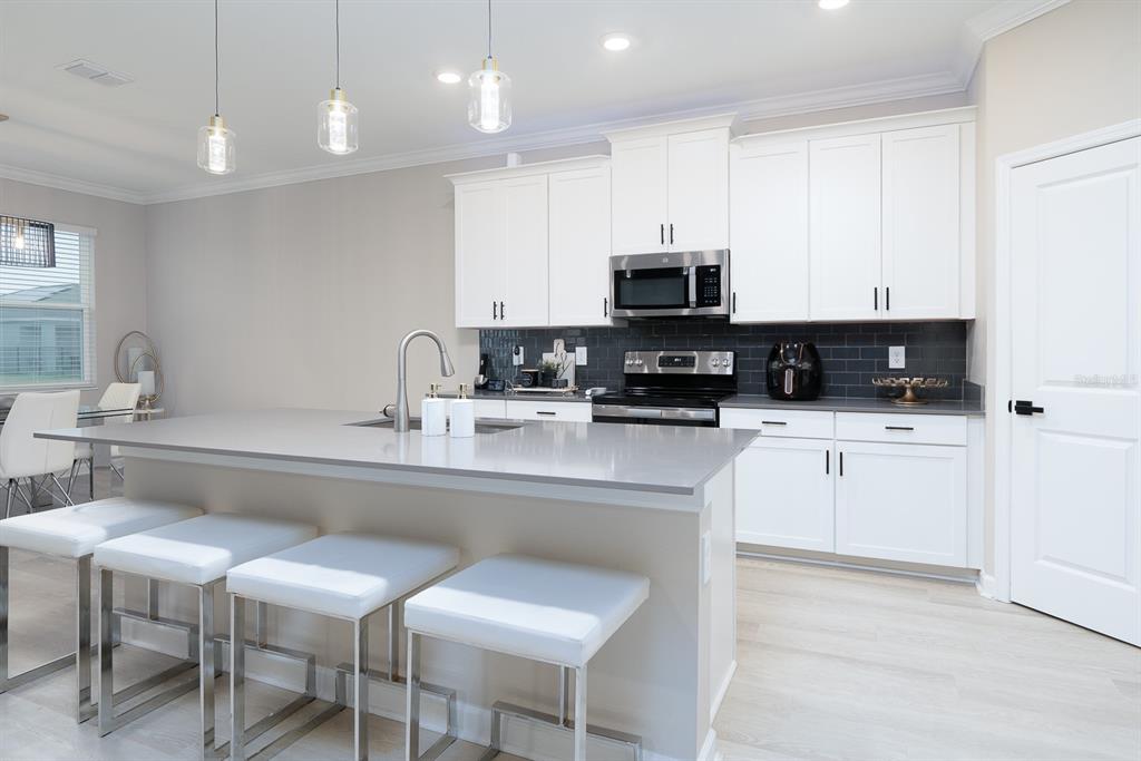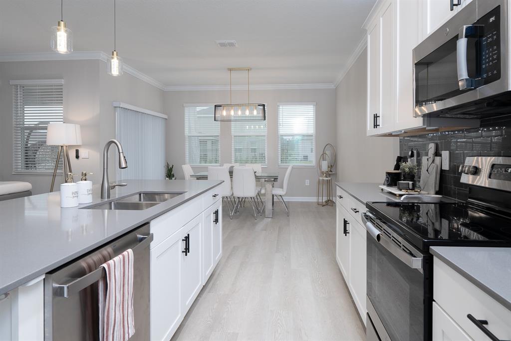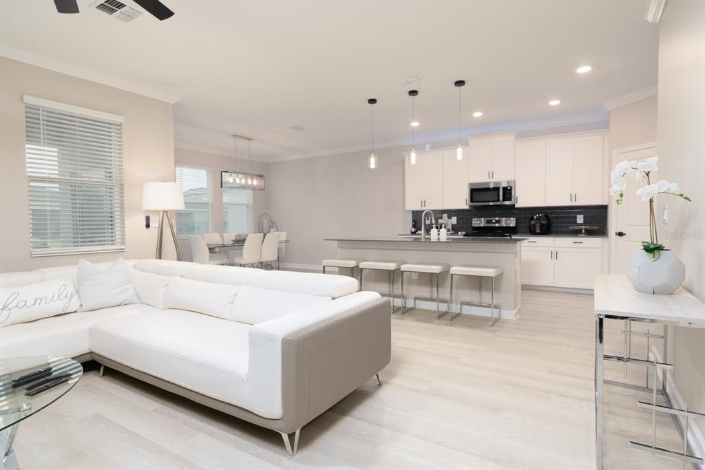 Stunning 4-Bedroom Home on Oversized Corner Lot in Providence Golf Community! Welcome to 3027 Camden Way, a beautifully upgraded 4-bedroom, 2.5-bathroom home nestled in the highly sought-after gated golf course community of Providence in Davenport, FL. Sitting on an oversized corner lot, this home boasts an array of premium upgrades and modern features designed for luxury and convenience. Inside, you’ll find luxury vinyl flooring throughout, crown molding, stylish kitchen pendant lights, upgraded ceiling and bathroom lighting, and an elegant stair-handrail. The gourmet kitchen is complete with upgraded solid wood cabinets with crown molding, hardware door handles, Quartz Countertops, back-splash and stainless-steel appliances. The primary bedroom features an en-suite shower and garden tub combo with an upgraded ample custom closet, providing exceptional storage and organization. Followed by large guest bedrooms with installed sleek ceiling fans. Exterior enhancements include a water softener system, gutters, an extended paved driveway and garage, a side paved walkway. Located in a resort-style community with world-class amenities, including a championship golf course, clubhouse, pools, fitness center, tennis courts, and more, this home offers the perfect blend of elegance, comfort, and convenience. Don’t miss this opportunity—schedule your private showing today!