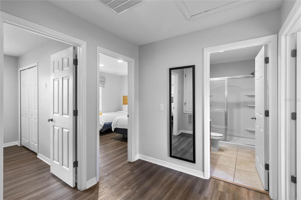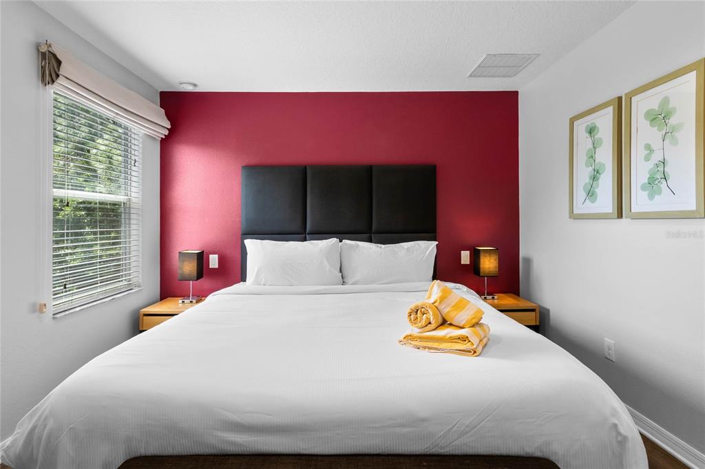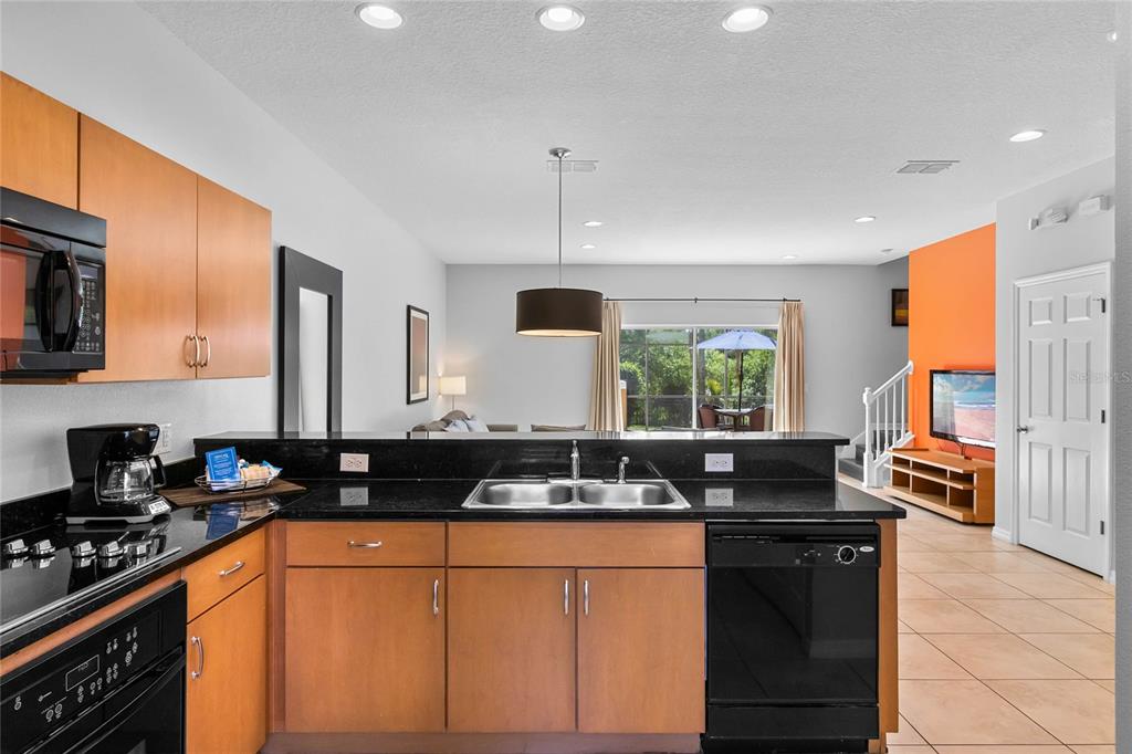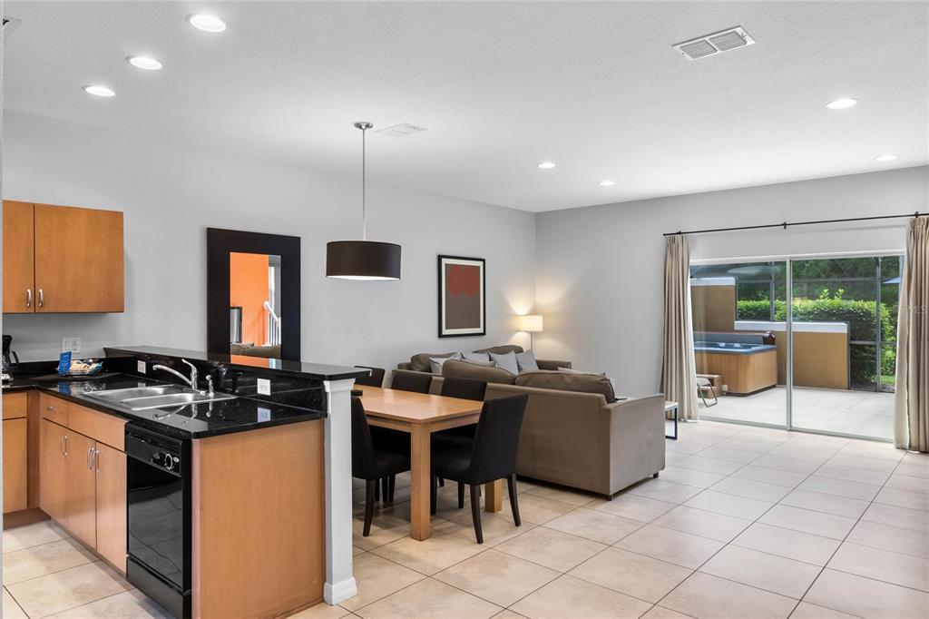 Beautifully Furnished 3-Bedroom Townhome with Hot Tub and Stunning Conservation Views! Welcome to this gorgeous end-unit townhome in the sought-after, guard-gated community of Encantada—where style, comfort, and location come together for the perfect Florida retreat or investment property. Boasting 3 bedrooms, 2.5 bathrooms, and a sun-drenched south-facing patio with your own private hot tub, this fully furnished property offers the ideal escape with tranquil views of lush conservation land. Step inside to a spacious open-concept layout, where the living room, dining area, and kitchen flow seamlessly together, creating a bright and airy atmosphere perfect for relaxing or entertaining. The kitchen features sleek black granite countertops, matching black appliances, and plenty of cabinet space. Downstairs also includes ceramic tile flooring, a convenient guest bathroom, and a laundry closet for added functionality. Large sliding glass doors off the living room open to a huge private patio—a true outdoor oasis featuring a patio table, lounge chairs, and a bubbling hot tub. The serene conservation view provides a peaceful backdrop of trees and nature, making this space ideal for morning coffee or evening relaxation. All three bedrooms are located upstairs. The primary suite offers a king-sized bed, ensuite bathroom, large closet, and lovely conservation views. The two additional bedrooms share a full bathroom, making the layout comfortable and practical for guests or extended stays. This property is fully furnished and ready to go, making it perfect for use as a short-term rental, vacation home, or investment property. Best of all, the resort-style clubhouse and amenities are just a short stroll away—including community pools, a lakefront clubhouse, playground, fitness center, and more. Conveniently located near US-192, you’ll have quick access to a variety of shopping, dining, and entertainment options. Plus, you’re only a short drive to Walt Disney World, Universal Studios, and all of Central Florida’s top attractions. Whether you’re seeking a peaceful getaway or a smart investment, this beautifully maintained home in Encantada checks all the boxes. Don’t miss your chance to own a slice of Central Florida paradise—schedule your private showing today!
