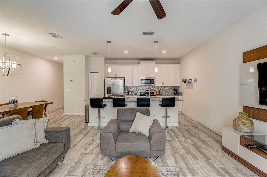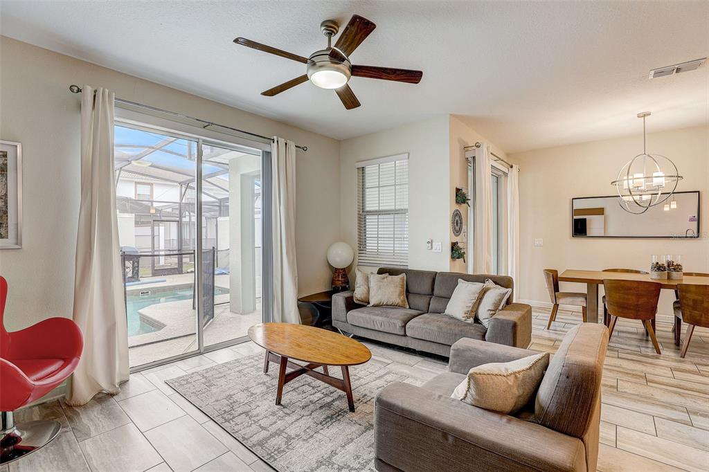 PRIME LOCATION & Fully Furnished with EVERYTHING included BELOW MARKET VALUE!! FRESHLY PAINTED Interior and recently Professionally Deep Cleaned including the upstairs Carpets Steam Cleaned! Welcoming all Investors, Snowbirds, Vacationers, and Disney fanatics! Use it while on vacation and collect high income when you’re not using it! Healthy income-producing property generating rental income in one of the best communities in Kissimmee known for Short Term rentals. The sellers will transfer future bookings to the new owner if using as an investment. Welcome to this wildly popular 24 hour GATED Storey Lake resort community to showcase this stunning 4 bedrooms and 3 full bathrooms Townhome with a PRIVATE POOL that is fully screened in for privacy. This gorgeous pool townhome boasts a modern and open layout floor plan with plenty of space and natural lighting throughout. Also equipped with elegant light fixtures and ceiling fans throughout to keep the home nice and cool with the air circulation. Host and entertain your guests and find your inner chef in this upgraded gourmet kitchen providing both class and elegance. The kitchen is equipped with top of the line stainless steel appliances, granite stone countertops, tile backsplash, 42″ cabinets, and a huge and inviting island that offers additional seating and counter prep space. The primary bedroom provides plenty of space to provide more comfort, and the guest bedrooms are themed to keep guests entertained and in magical spirits. The master and 2 guest bathrooms all have matching granite stone countertops. Designed for ultimate relaxation and entertainment, step out back for some fresh air and therapy to enjoy your well maintained private screened in-ground pool with nice outdoor furnishings, an outdoor gas grill to barbecue and a shaded lanai area to keep you cozy and out of the Florida sun. The Storey Lake resort-style community has SO much to offer to keep the fun and amenities going, including a resort-style pool and lazy river, an interactive kid zone splash pad park with two waterslides, a Clubhouse featuring a Tiki Bar/Grille, a private sand beach with canoe/kayak rentals, a boardwalk, picnic area with a fire pit, private cabanas, a community dock, tennis/basketball courts, and a sand volleyball court. The fitness center offers state-of-the-art equipment and is open for extended hours, and the community includes 24 hour security. Disney World is just a short 5 miles west, Disney Springs is 3 miles north, the popular shopping mall known as The LOOP is just 2.5 miles east. A short 15 mile distance from the Orlando International Airport, and within 15-20 miles of Universal Studios & Sea World, and many more attractions. Also close to world-class restaurants, shopping, supermarkets, hospitals/pharmacies, major roads and highways. Experience the epitome of luxury living and create cherished priceless memories with family and friends in this exceptional Storey Lake pool townhome resort providing you with the ULTIMATE Vacation Home Ownership Experience near Disney!