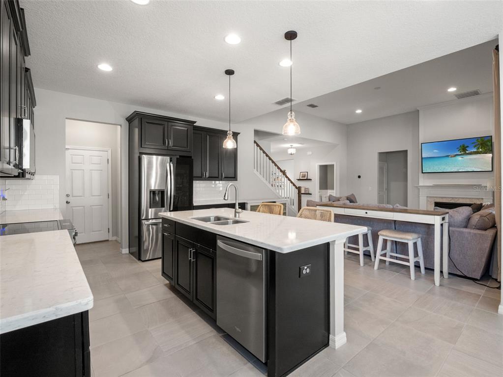 Stunning upgraded multigenerational home in the highly sought after gated community of Waterbrooke. This home is one of a kind in the community with two primary suites, one on the first floor and one upstairs with 3 additional bedrooms allowing for flexibility as your needs change. Great room with fireplace, soaring ceilings and open floor plan. The gourmet kitchen has a large center island, quartz countertops, oversized walk-in pantry and spacious eating area large enough for your favorite farmhouse table. The first floor primary bedroom has a spacious bathroom with dual sinks, large walk in shower with seamless shower doors and large walk in closet. Also on the first floor are two flexible living areas that can be used as a dining room, media room, office, den, playroom, workout room, additional bedroom, or anything your lifestyle chooses. Upstairs is the second primary bedroom, dream closet with windows and mirrored barn doors and attached bathroom with wet room containing an oversized shower and luxurious tub. Three additional bedrooms and bathroom complete the upstairs. A paver screened lanai and extended paver patio with gazebo that overlooks the fully fenced back yard is perfect for entertaining and play. The 3-car split garage offers plenty of parking and storage space. LVP and upgraded tile throughout for a carpet free home. World class resort style amenities are literally steps away (three doors down) and include a community pool, fitness center, splash pad, playground, community lake and lots of open space to enjoy leisurely walks. LOW HOA fees. Easy access to the Turnpike, 408, Downtown, West Orange Trail, Downtown Winter Garden and Downtown Clermont. Close to major attractions, the airport, hospitals, dining, shopping. Make your appointment to see this beautiful home today!