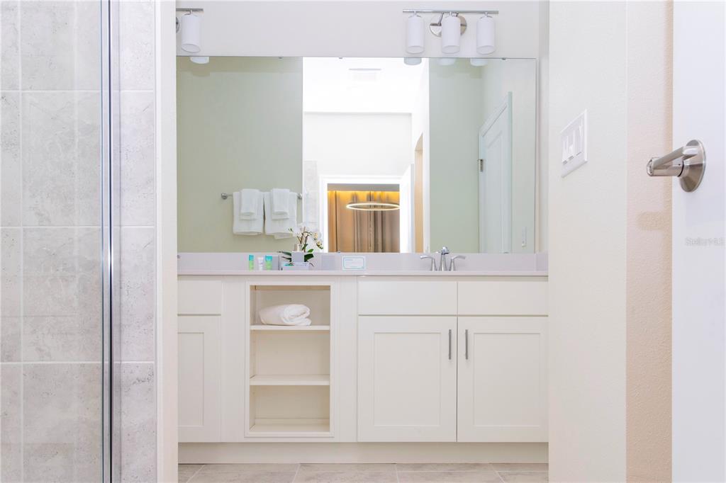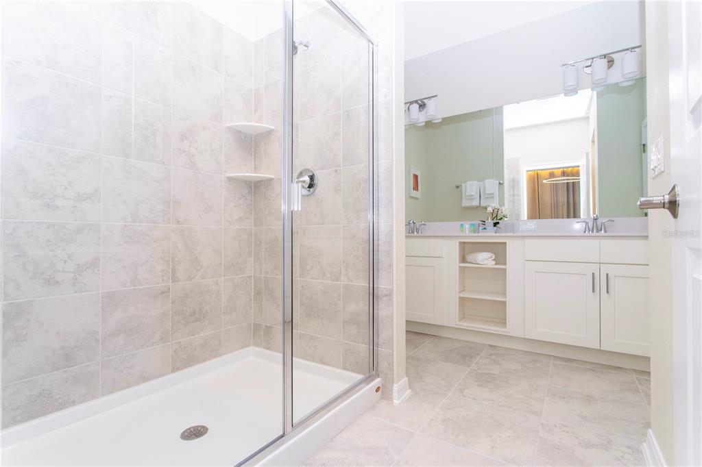 The owner’s suite features dual sinks, a large walk-in shower, and a generous walk-in closet.