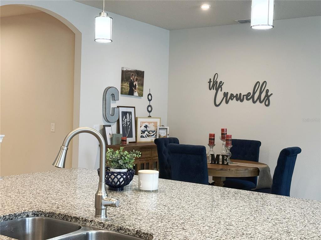 FINANCING FELL through passed inspections ….***Honey STOP the CAR***This 4/2 split floor plan is MOVE-IN read home in MINNEOLA. Starting with curb appeal and a driveway that has pavers. Welcome guests through the front entry into the large foyer. The entire home has 5 14” baseboards throughout, 9’ extra tall ceilings and 8’ Exterior doors. Ceramic tile flooring off set allows easy cleaning. The Living room is open to the Dining room, Kitchen and Dinette, has ceramic tile flooring, 5 1/4” baseboards, sliding glass doors onto the covered and SCREENED in rear lanai. The Dining room has ceramic tile flooring and is easy to serve in and be apart of all the homes action. The Kitchen has a GOURMET Kitchen, 42” cabinets, GRANITE countertops, walk in pantry, decorative shelving oversized gourmet island with BAR top seating with PENDANT lighting, ceramic tile flooring, STAINLESS steel appliances, recessed lighting and open to the Living and Dining room. The Dinette off the Kitchen has a view of Living, Dining room and Kitchen as well as the covered and screened in lanai and fenced in backyard, and ceramic tile floors. The Primary bedroom has a en-suite bathroom, extra tall ceilings and ceiling fan. The Primary bathroom has ceramic tile flooring, tall countertops, DUAL sinks, separate water closet, linen closet, shower with RAIN head and walk in closet with custom built in shelving. Bedroom 2 & 3 have built in closets, ceiling fans, 5 1/4” baseboards, extra tall ceilings and doors, and are off a mini hallway separated with Bathroom 2. Bathroom 2 has ceramic tile flooring, QUARTZ countertops, tub/shower combo, tall countertops linen closet and located between Bedroom 2 & 3. Bedroom 4 has a built in closet, ceiling fan and built in desk that is over the flooring and can be removed easily. The backyard is FENCED in with a vinyl fence. There is a nest and security system with cameras. WIFI garage door opener, irrigation system, gutters on the outside of the home. SCREENED in covered porch to grill, sit and enjoy the outdoors.There is a community pool and playground for enjoying the outdoors. AMAZING sunsets and located with easy access to the Turnpike, new Hospital, Shopping, Highway 27 and Highway 50.Community pool and playground.