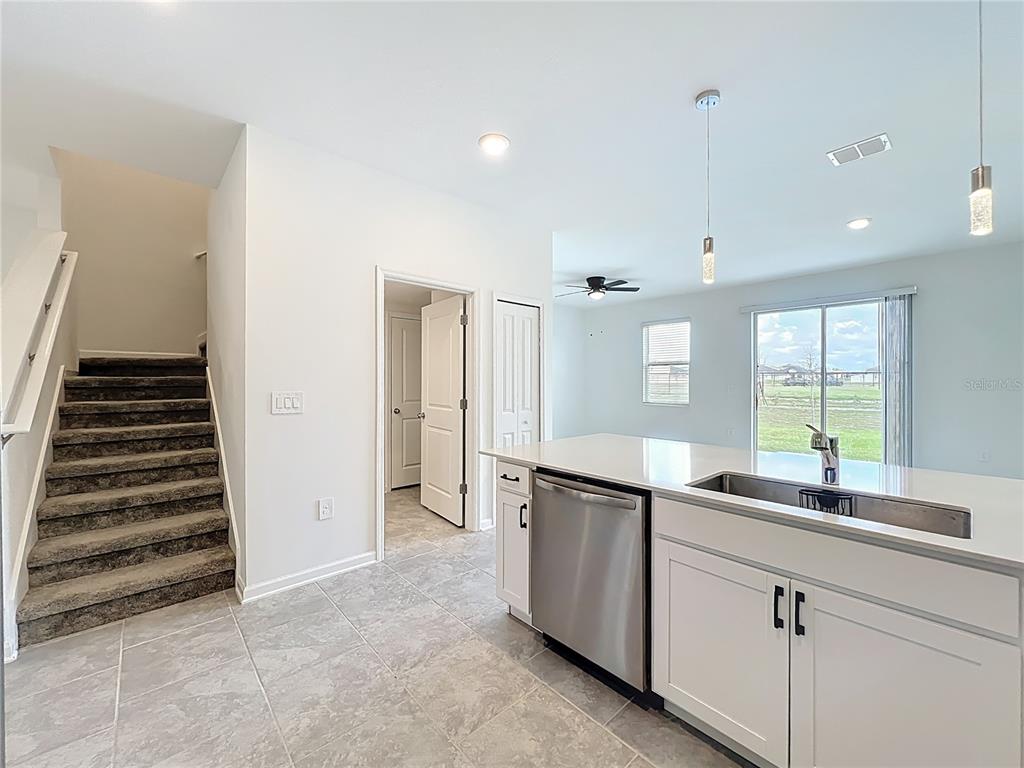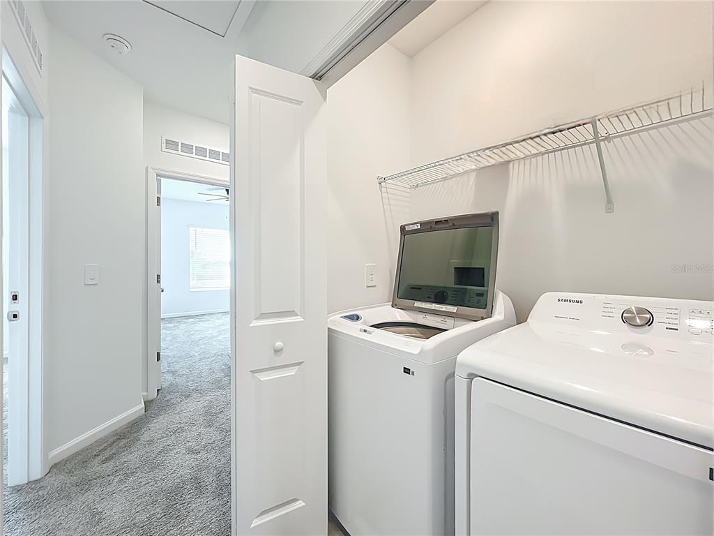 Like new! Ideal for investors or as a primary residence. As you walk into this spacious 3 bedroom, 2 1/2 bath townhome with upgraded brick-layed ceramic tile throughout the first floor, you enter into the useful separate flex/dining/study area, a wall separates the kitchen which features stainless steel appliances and quartz counter tops and overlooks the gathering / great room, with a half bath for guest, perfect for entertaining. Upstairs is a split floor plan, and a hallway separates the 2 large guest bedrooms and 2nd bathroom with a tub from the Primary bedroom, which features a spa inspired en-suite bathroom with dual vanities and shower, tray ceilings, ceiling fan, and a massive walk in closet! The laundry room is also conveniently located upstairs, washer and dryer are included! The patio faces the dog park area, NO REAR NEIGHBORS! and the townhome is adjacent to the extra guest parking lot. The community has access to a dog park with covered seating/picnic area, the Astonia community pool, playground, and the LOW HOA INCLUDES outside and grounds maintenance and HIGH SPEED INTERNET! Chateau at Astonia is conveniently located near I-4, Highways 27 and 17, providing easy access to all that Orlando and the surrounding areas have to offer. Great shopping and dining available just 7 mins away at Posner Park, hospitals and only 10 miles away from Walt Disney World Resort. Surrounded by A rated charter schools! Come take a look today!