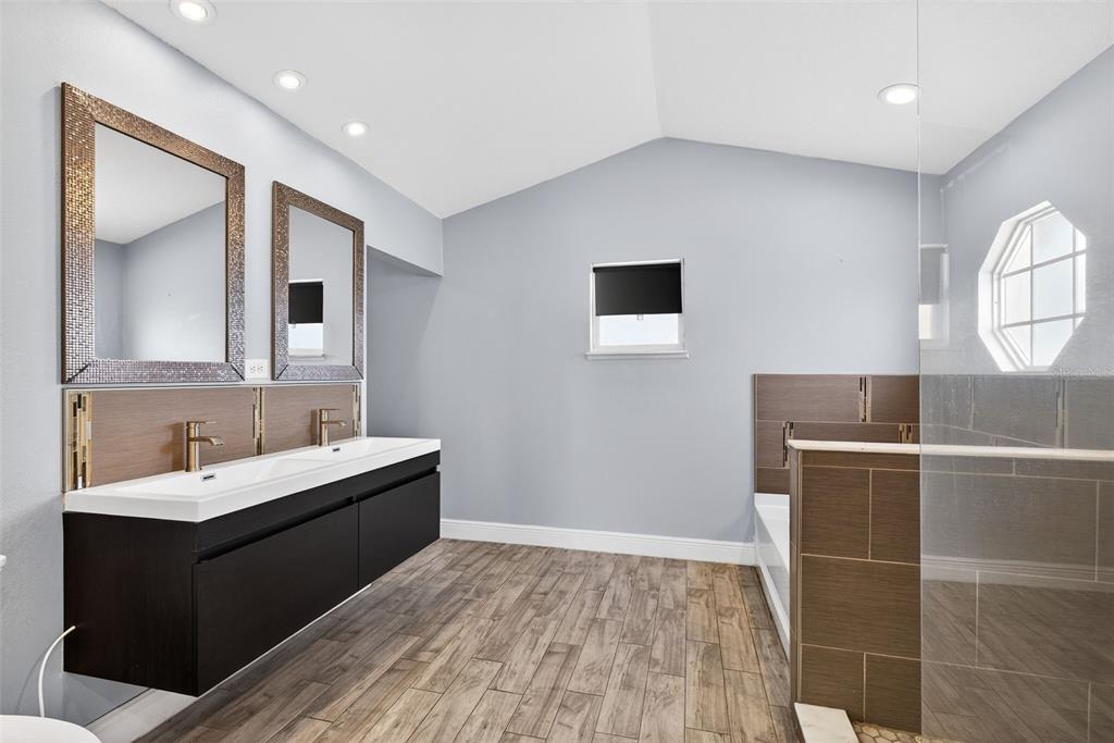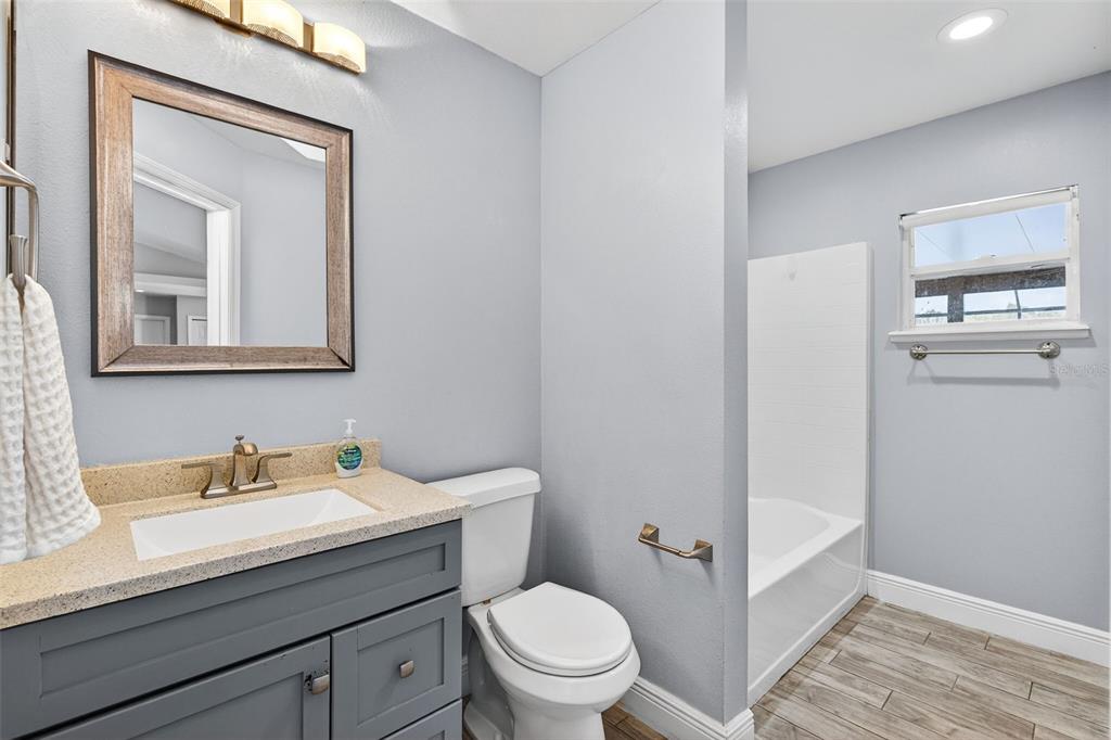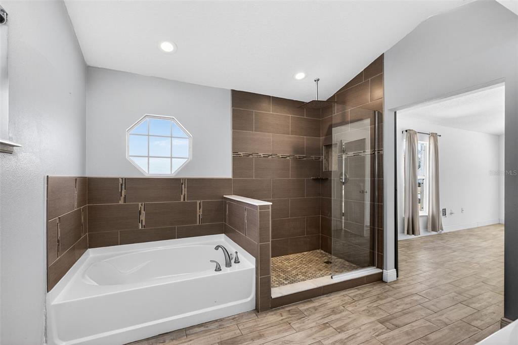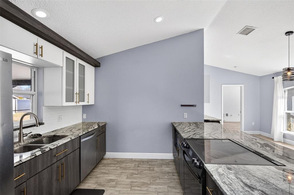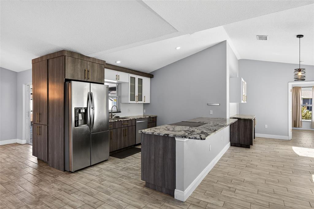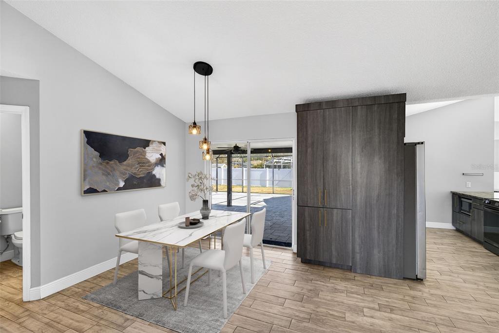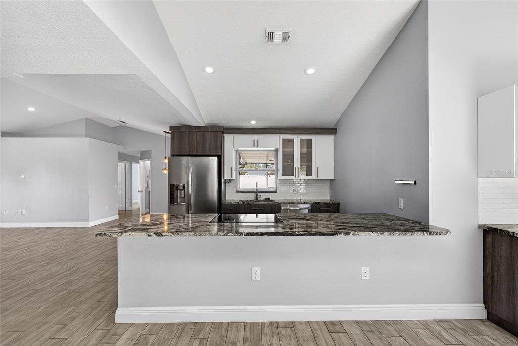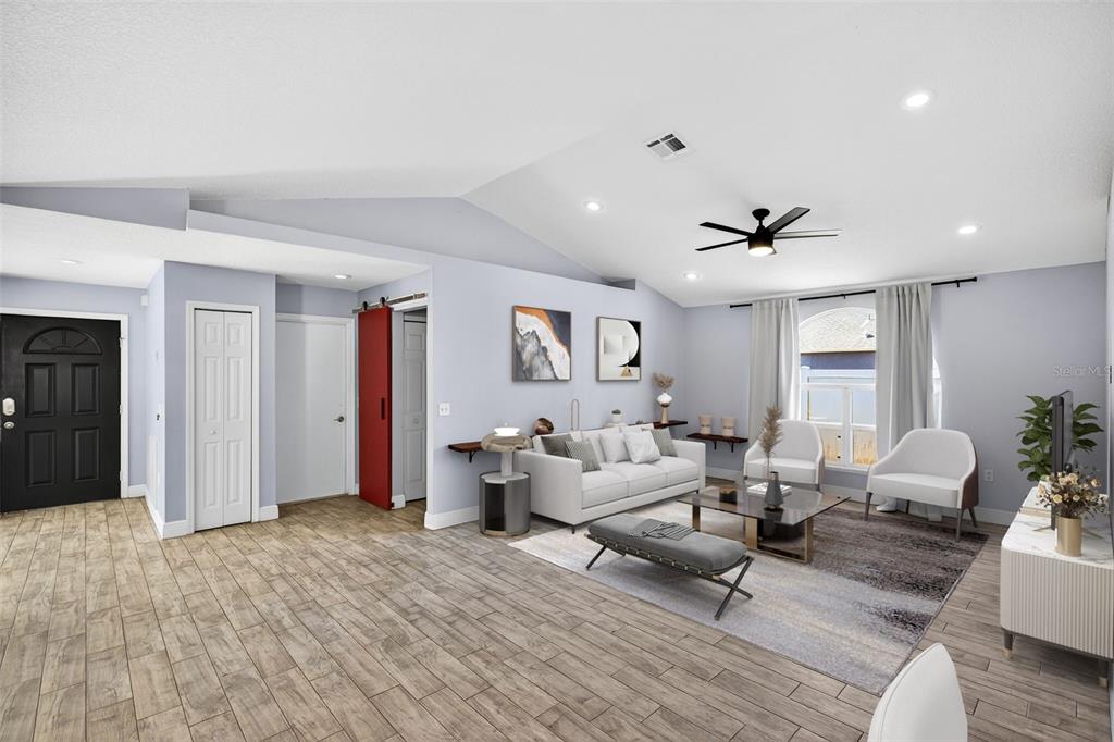 One or more photo(s) has been virtually staged. Don’t miss the opportunity to make this beautifully updated 4 bedroom, 2 bath home on over a quarter acre lot your own! As you enter you are greeted by an open floor plan, vaulted ceilings, wood-look tile throughout and a well-appointed kitchen complete with granite countertops and dry bar. The spacious owner’s suite features a rain down shower, soaking tub, dual vanities and large walk-in closet! The garage has been converted into a bonus space that can be used as an office, recording studio, podcasting area and is under air conditioning that is not included in the square footage in the description. The recently added, fully screened, paved outdoor space is amazing for entertaining family and friends. The expansive yard comes fully fenced in with a PVC fence. Don’t miss out, schedule your showing today!