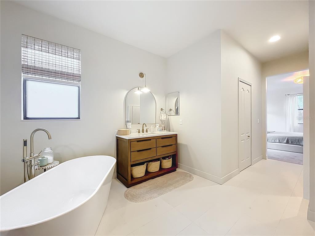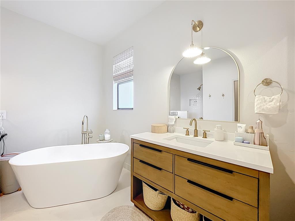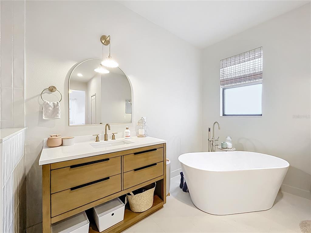 The primary suite is conveniently located on the first floor and features dual walk-in closets, a spa-style bathroom with double vanities, a garden tub, and a separate walk-in shower, creating a private retreat within the home. Upstairs you’ll find four additional bedrooms and a versatile loft space, perfect for a game room, media area, home office, or second living space.