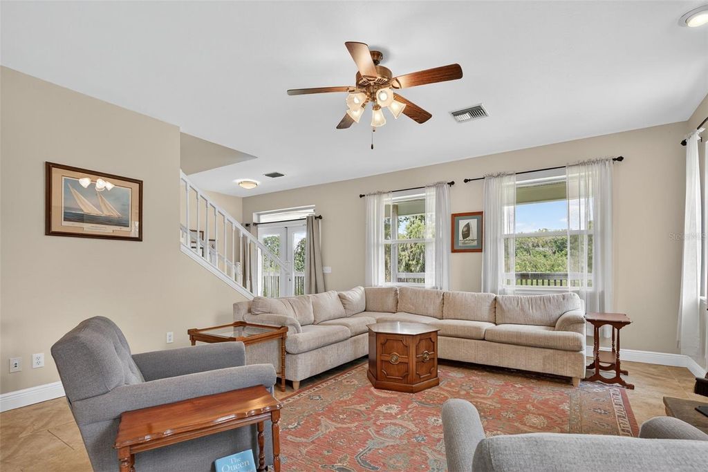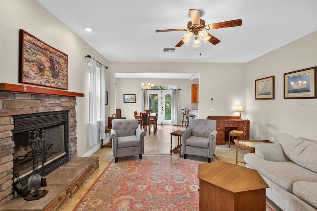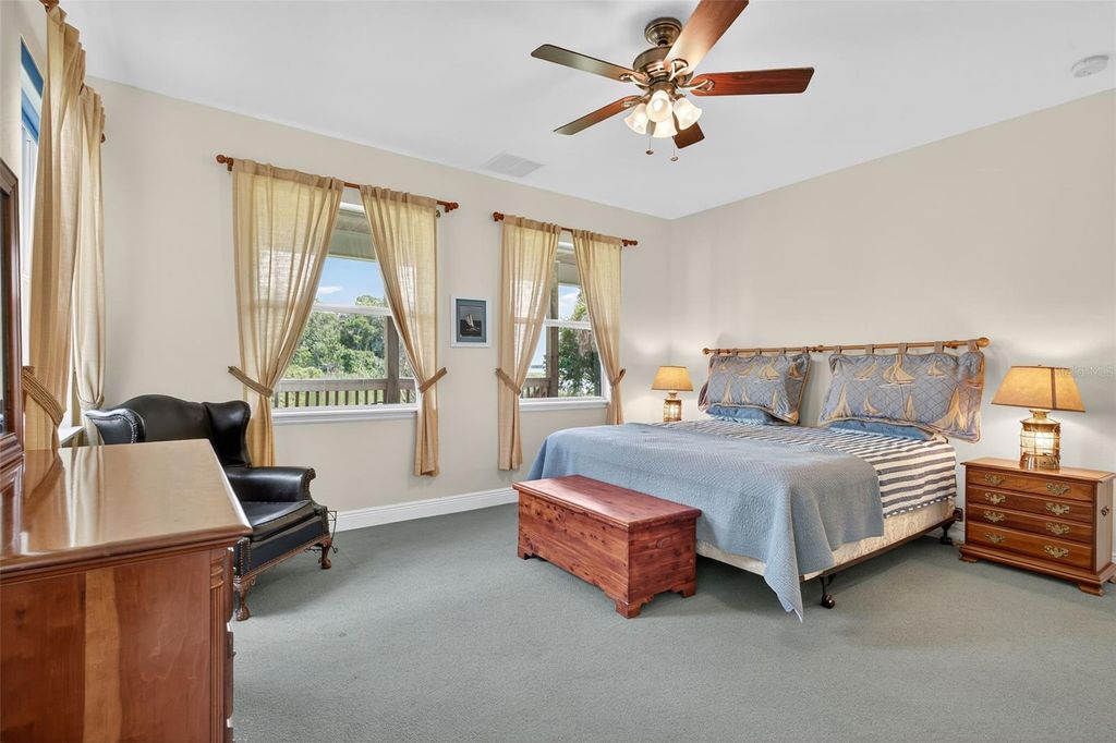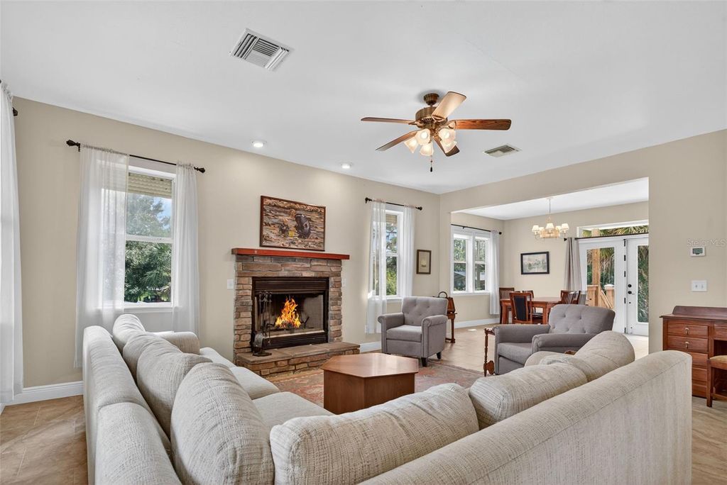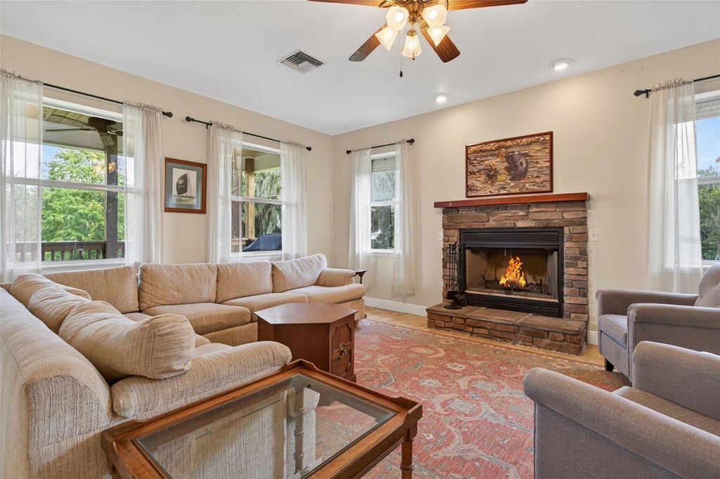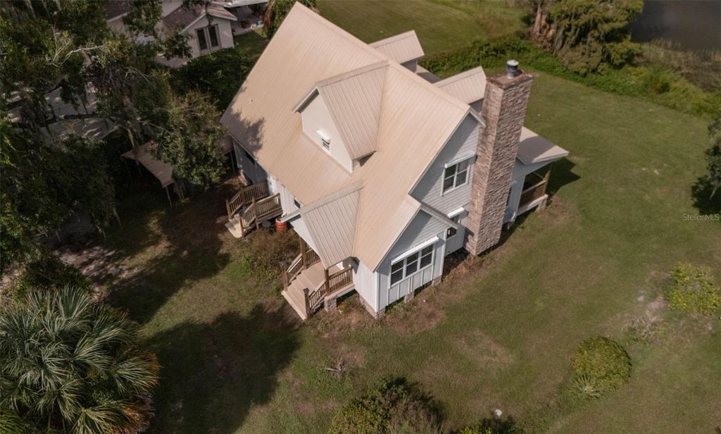 If you are looking to capture a piece of old Florida and want to live peacefully on eighty feet of lakefront on Lake Marion in this 2010 3 bedroom 2 1/2 bath lake home than look no further! It’s perfect fisherman’s paradise with boat access next door. No HOA means total freedom for long term rentals and vacation rental. Enjoy mornings and evenings on the front porch with private and serene lake views. Cozy up to the wood burning stone fireplace as you watch the various local birds such as peacocks, bald eagles and osprey soar pass your expansive windows. The windows were upgraded with automatic and or manual hurricane shutters. The metal roof will add an extra layer of security and peace of mind during storm season while a tankless water heater that was newly installed in 2024 will keep the water temperatures perfectly regulated. Additionally a brand new well is currently being drilled and will be ready for the new owner. Downstairs the ensuite master bedroom with a whirlpool jet tub adds ease of access to the living areas in this meticulously built and maintained home.The kitchen has granite countertops and every appliance needed to cook efficiently. The dining room is large enough to gather family and friends for meals year around. Upstairs are two oversized storybook bedrooms with quaint dormers looking out onto Lake Marion. This home has also been freshly pressure washed, If you are looking to capture a piece of old Florida in a safe and inviting home, look no further!