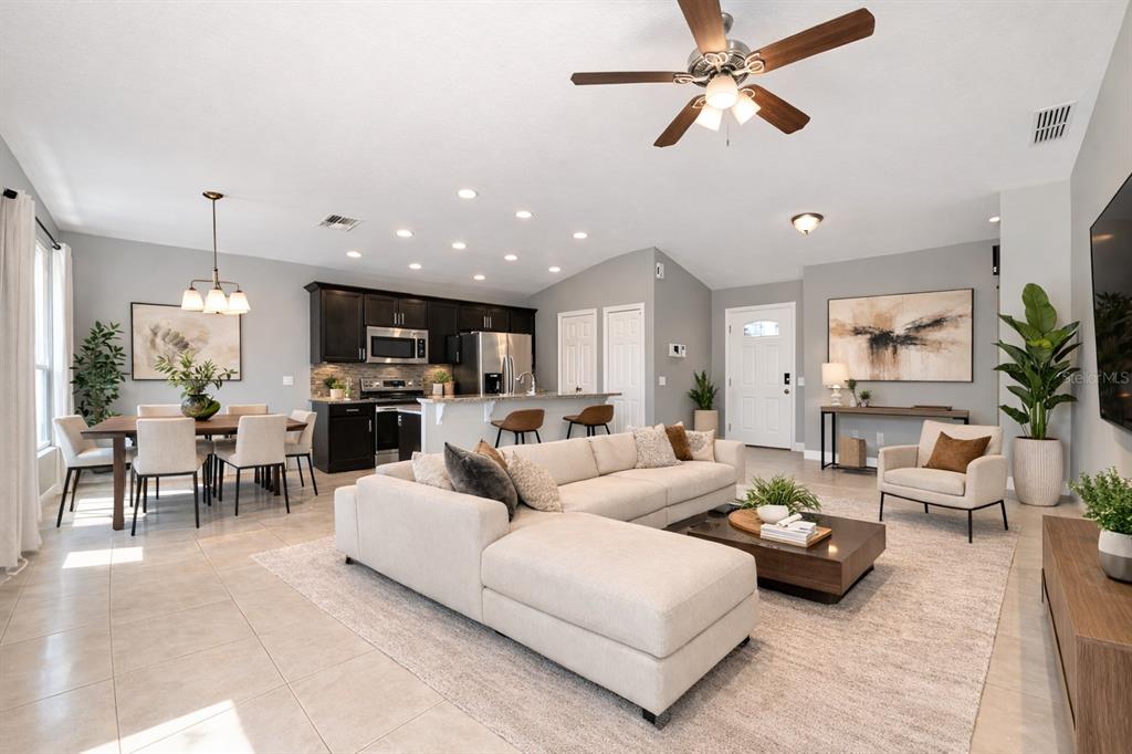 Move-In Ready Corner Lot Home with Fully Paid Solar Panels & Low Energy Costs… 3-bedroom, 2-bathroom home built in 2017, located on a corner lot offering added privacy and abundant natural light. One of the standout features of this property is the fully paid solar panel system, helping keep the average electric bill around $65 monthly, providing significant long-term energy savings. The home features an open-concept layout connecting the living, dining, and kitchen areas, creating a functional and comfortable space for everyday living. The kitchen includes stainless steel appliances and ample cabinet space. Ceramic tile flooring throughout the home provides durability and easy maintenance. Built in 2017 and maintained by its original owner, this property offers an excellent combination of energy efficiency, functionality, and long-term savings. A great opportunity for buyers looking for a move-in ready home with significantly lower energy costs. Schedule your showing today.