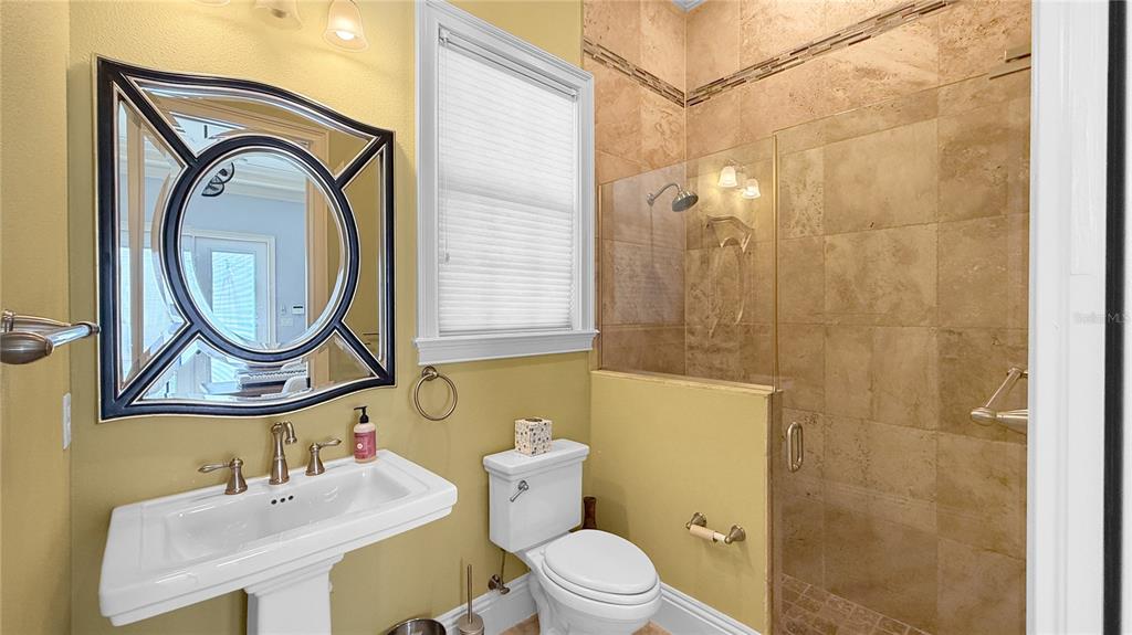 The Main Level Offers Three Spacious Bedrooms, Each With Its Own Ensuite Bath, Including Private In-Law Quarters Accessed Through The Courtyard. A Dedicated Office Provides Flexibility As A Potential Sixth Bedroom. The Oversized Garage Has Been Thoughtfully Converted Into A Climate-Controlled Fitness Studio With A Full Mirrored Wall And Even A Drop-Down Projector For Training Or Entertainment.