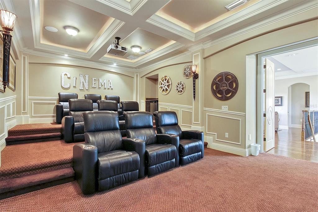 Upstairs, A Custom-Designed Private Theater With Nine Reclining Chairs Creates A True Cinematic Experience. Two Additional Ensuite Bedrooms Connect To A Generous Bonus Lounge Complete With A Wet Bar — Perfect For Game Nights Or Relaxed Evenings In. Step Out Onto The Covered Balcony To Take In Postcard-Worthy Golf Course Views And Glowing Sunsets, All While Enjoying A Game Of Pool In Your Elevated Outdoor Retreat.