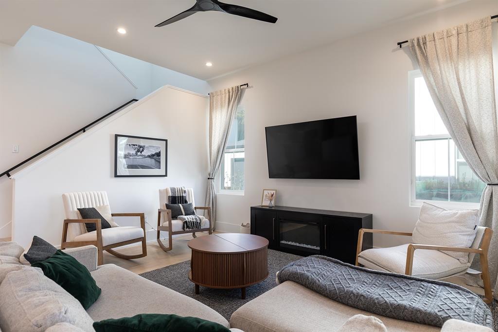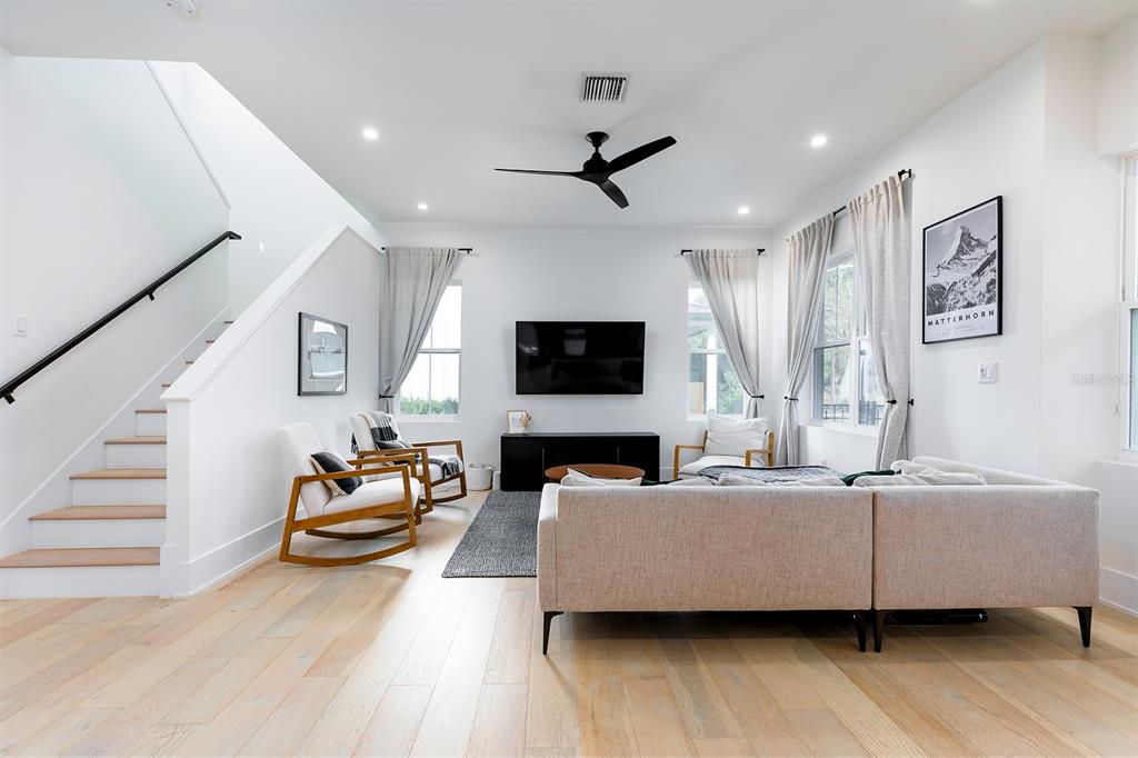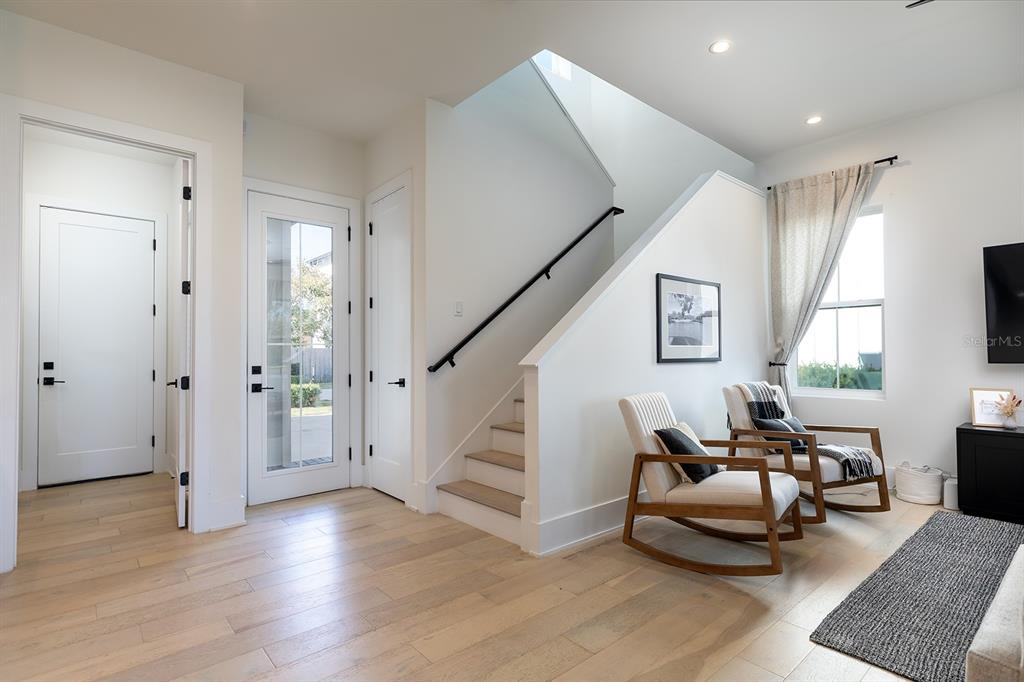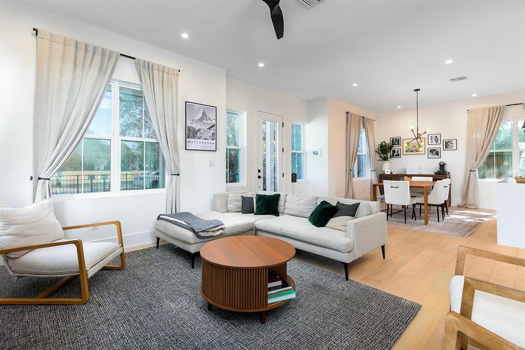 * Main Level: An open-concept living and dining space designed for entertaining, featuring high ceilings and sleek finishes. The laundry room is conveniently located on the main floor, along with a chic powder room and access to the 2-car garage.