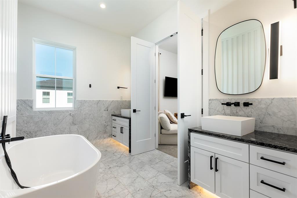 * The Primary Suite: A spacious retreat featuring a massive walk-in closet and a spa-inspired bath with a deep soaking tub and a large walk-in shower.