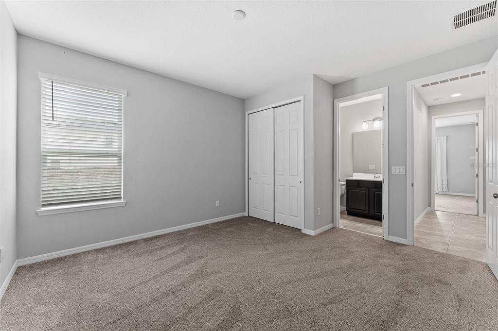 Each bedroom features its own private full bathroom, along with an additional half bath for guests. The primary suite, bathroom, and walk-in closet span the full length of one side of the home, creating a spacious and well designed retreat with generous storage. The walk-in closet connects directly to the laundry room, adding ease and efficiency to daily routines.