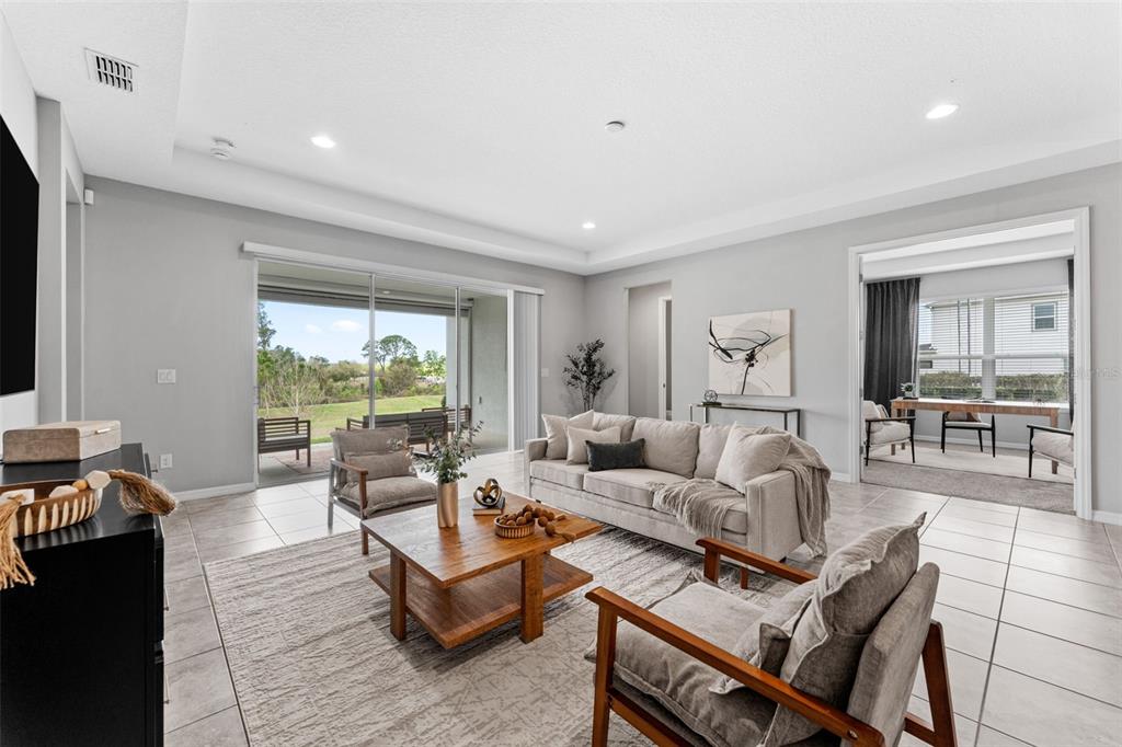 Located within the gated Lakeside Preserve community on Johns Lake, this home offers a quiet residential setting with a scenic entrance that creates a sense of separation from major traffic corridors while remaining conveniently connected to daily essentials. The flexible floor plan supports modern living and includes a private office, ideal for working from home or creating a focused, dedicated space.