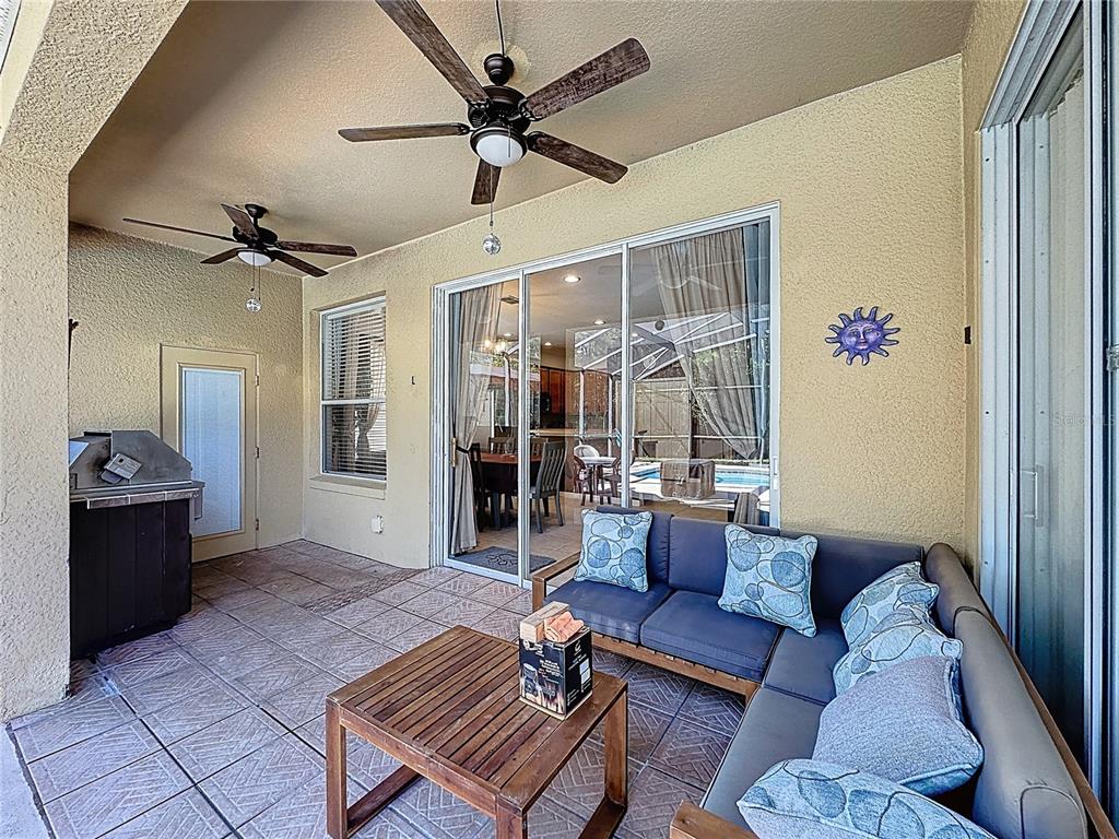 The garage has been converted into a game room, creating the perfect entertainment space for guests. Step outside to the screened lanai where you’ll find a heated pool and spa, outdoor grill and sink, pool shower, and additional half bath, all overlooking a private backdrop with no rear neighbors.