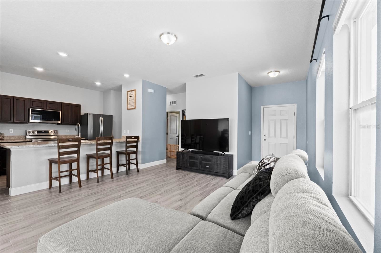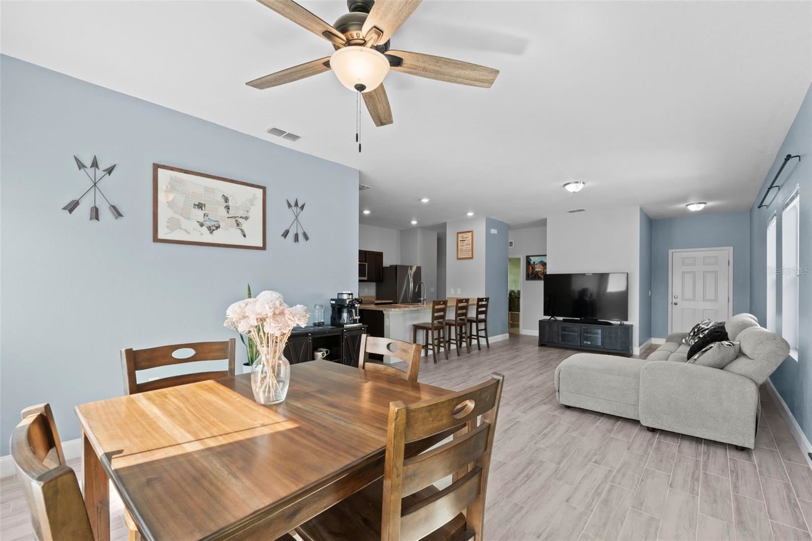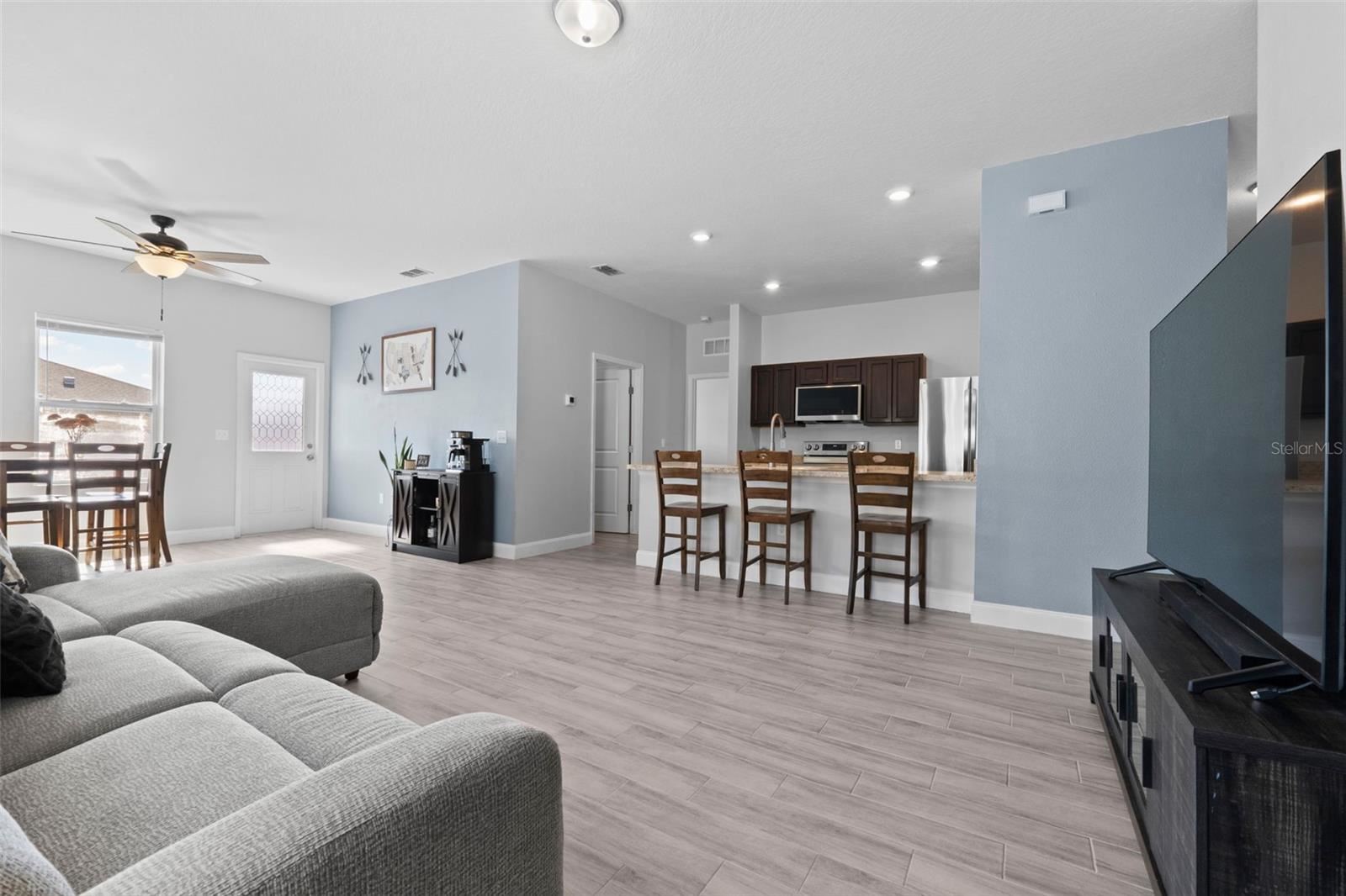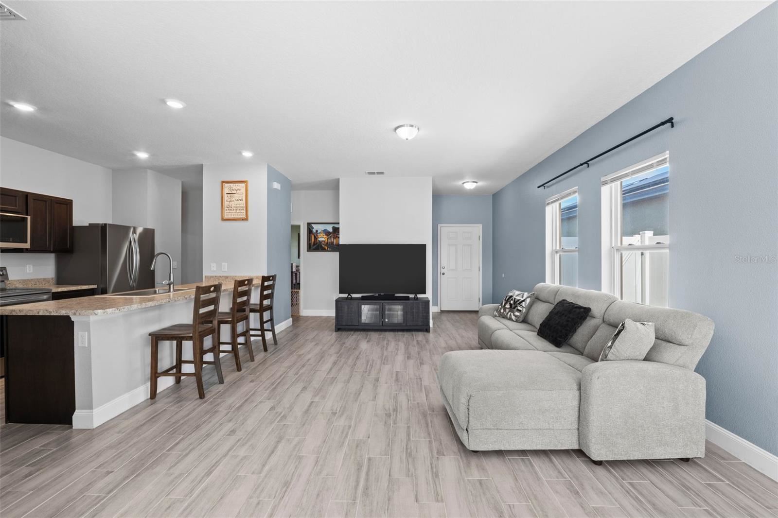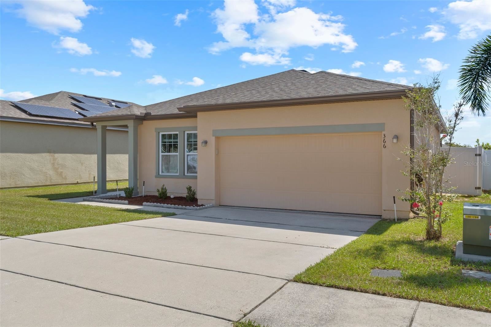 Discover modern comfort at 366 Eaglecrest Drive, a contemporary and charming 3-bedroom, 2-bathroom home built in 2018 that blends style, function, and everyday ease. Step inside to find a bright open layout with wood-look tile flooring throughout the main living areas, kitchen, and office. The kitchen shines with upgraded appliances and ample cabinetry, flowing seamlessly into the dining and living spaces, perfect for both daily living and entertaining. The spacious primary suite features a walk-in closet and private en-suite bath, while thoughtful details like gutters and a Ring doorbell system add extra peace of mind. A two-car garage provides additional convenience and storage. Out back, enjoy your fully fenced yard, a private space ideal for pets, play, or relaxing evenings outdoors. Set in a growing Haines City community, this home offers easy access to major highways, shopping, dining, and neighborhood green spaces.