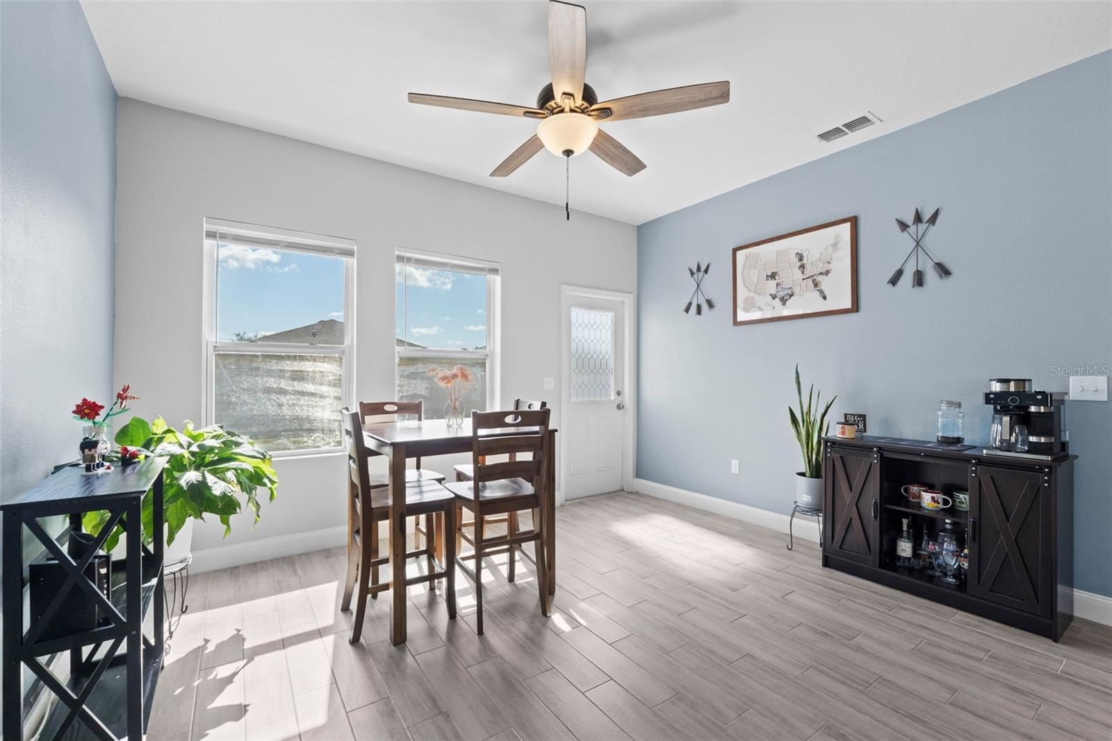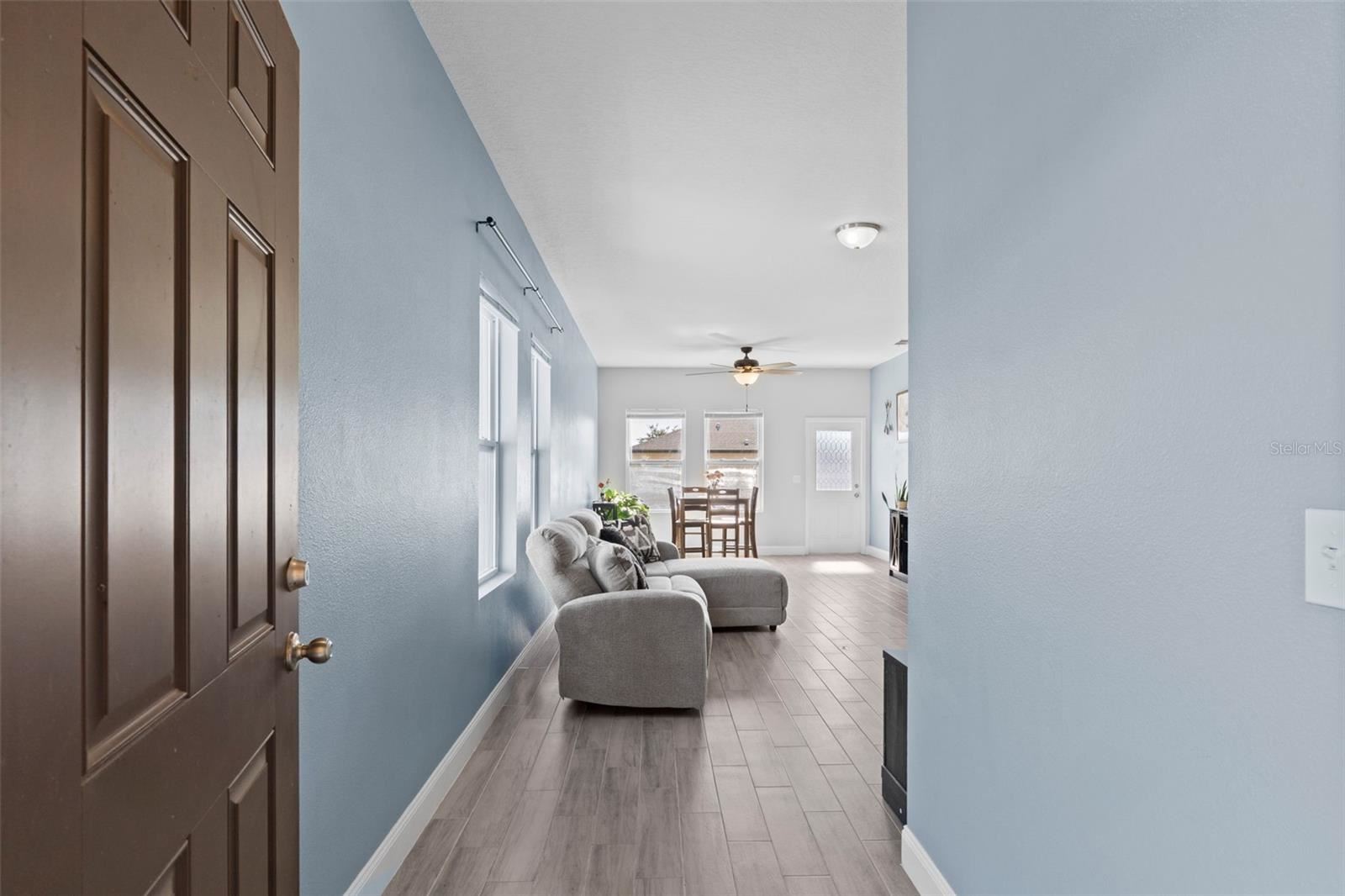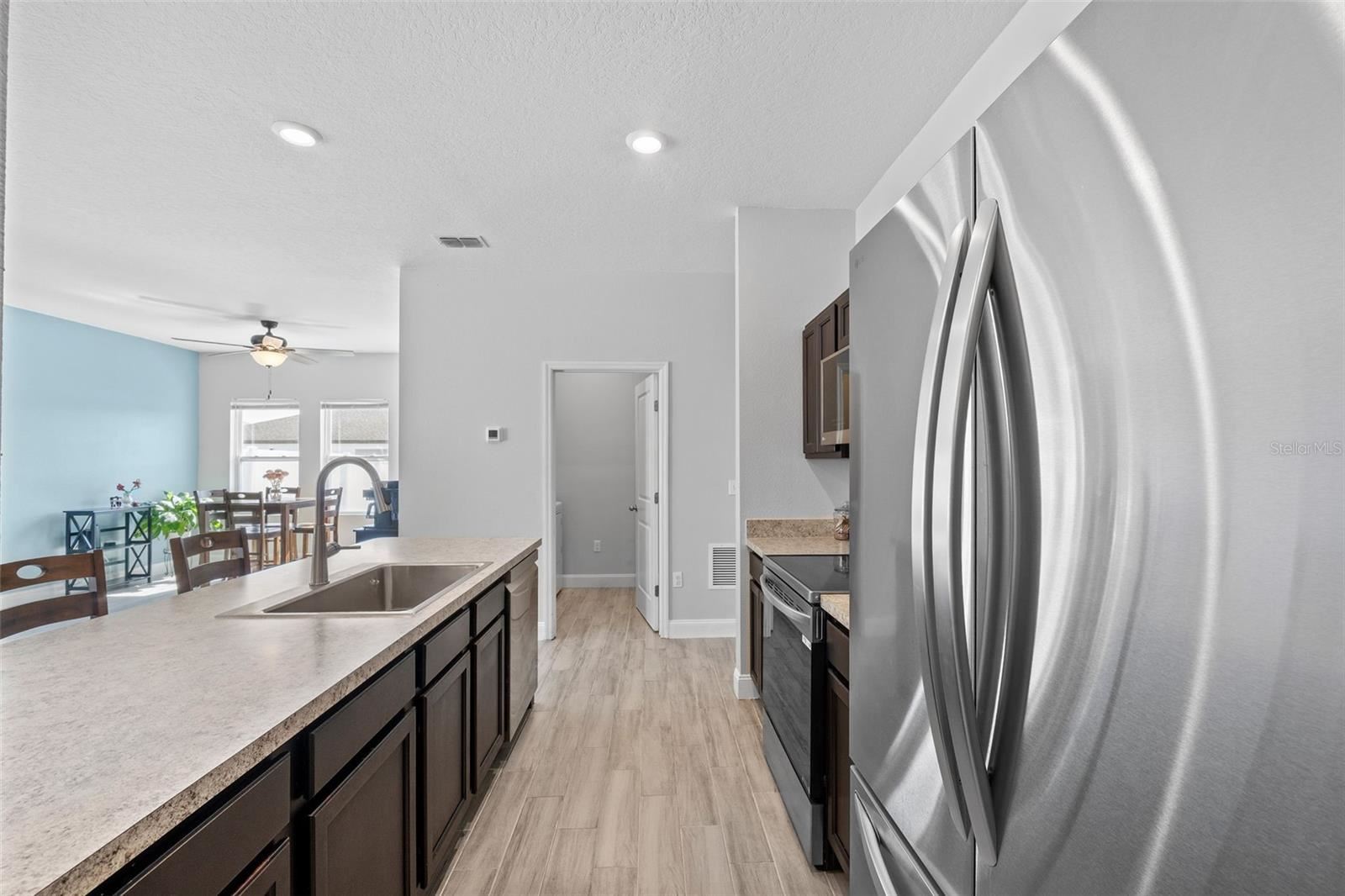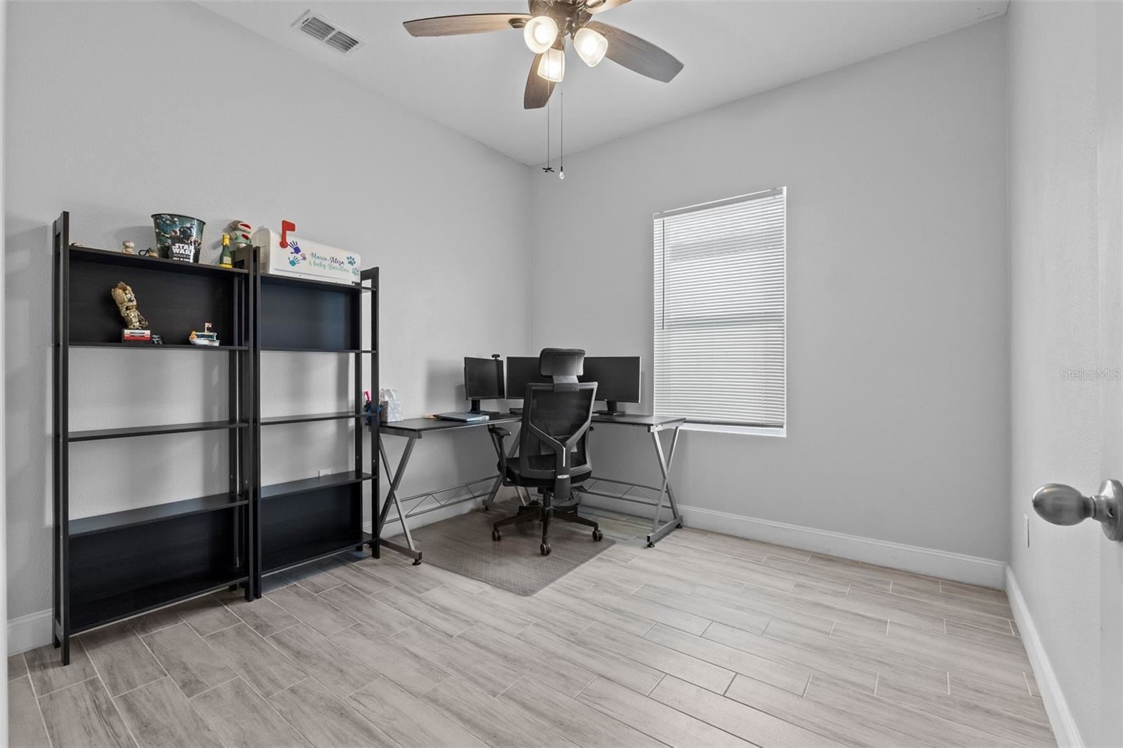 Discover modern comfort at 366 Eaglecrest Drive, a contemporary and charming 3-bedroom, 2-bathroom home built in 2018 that blends style, function, and everyday ease. Step inside to find a bright open layout with wood-look tile flooring throughout the main living areas, kitchen, and office. The kitchen shines with upgraded appliances and ample cabinetry, flowing seamlessly into the dining and living spaces, perfect for both daily living and entertaining. The spacious primary suite features a walk-in closet and private en-suite bath, while thoughtful details like gutters and a Ring doorbell system add extra peace of mind. A two-car garage provides additional convenience and storage. Out back, enjoy your fully fenced yard, a private space ideal for pets, play, or relaxing evenings outdoors. Set in a growing Haines City community, this home offers easy access to major highways, shopping, dining, and neighborhood green spaces.