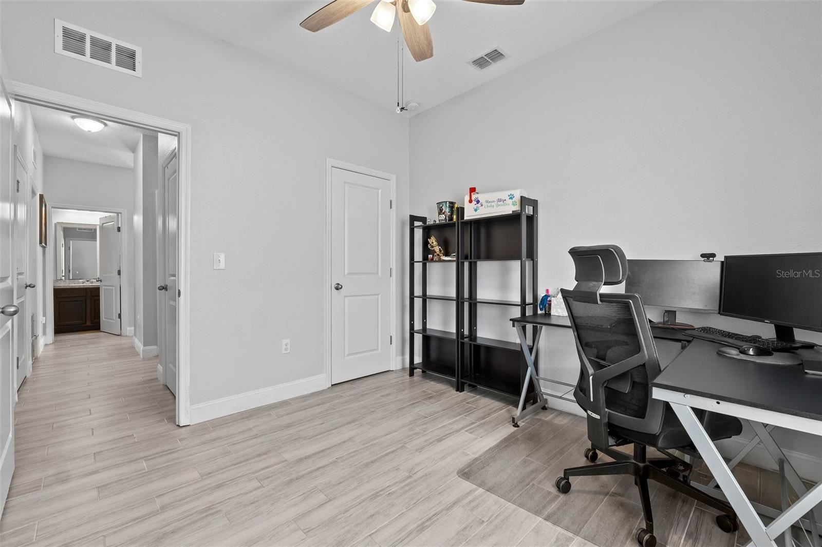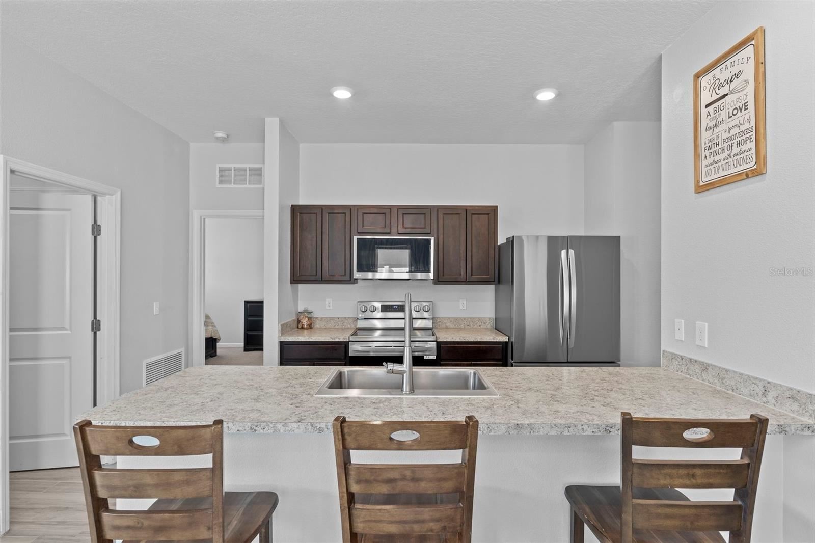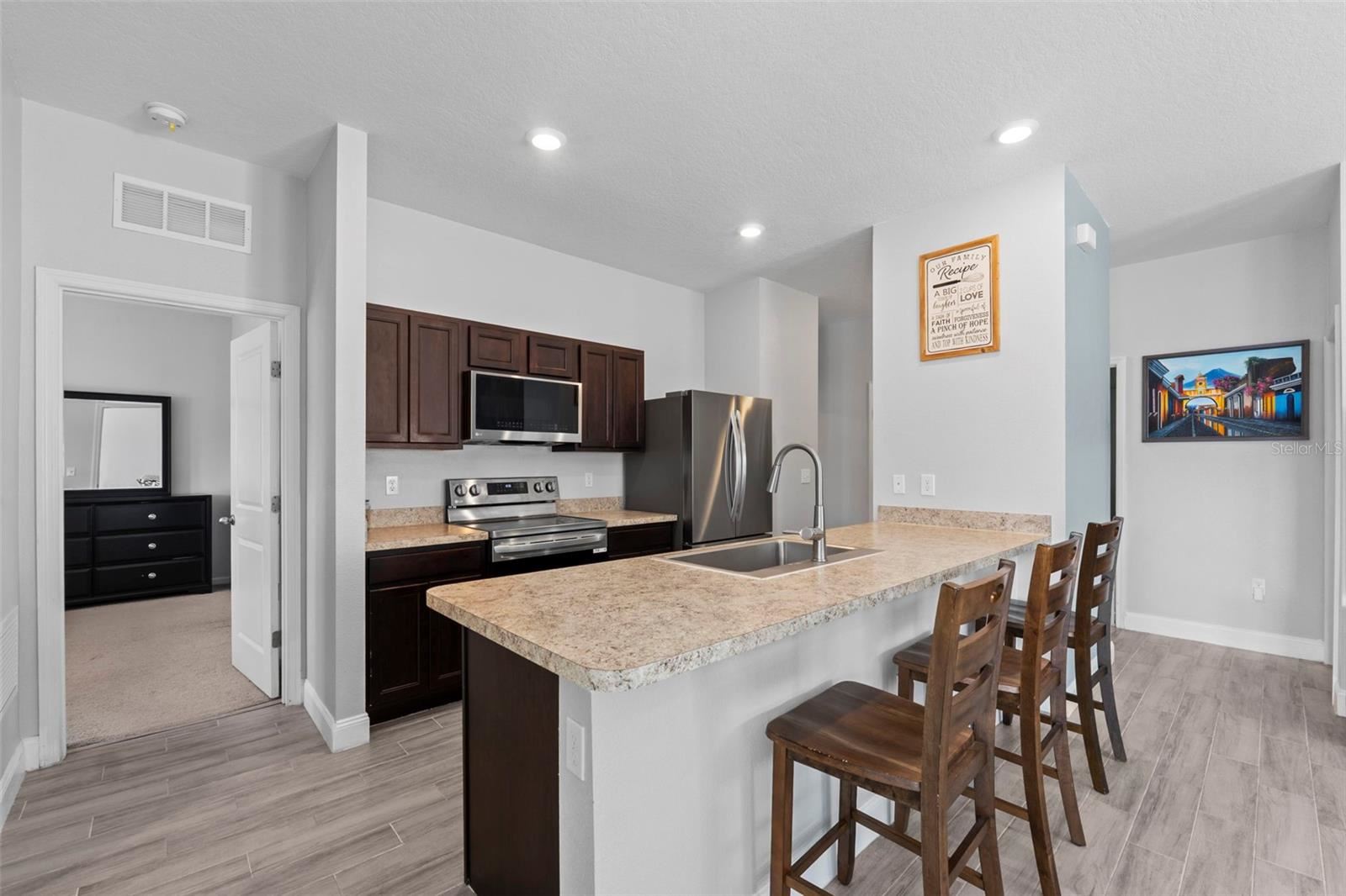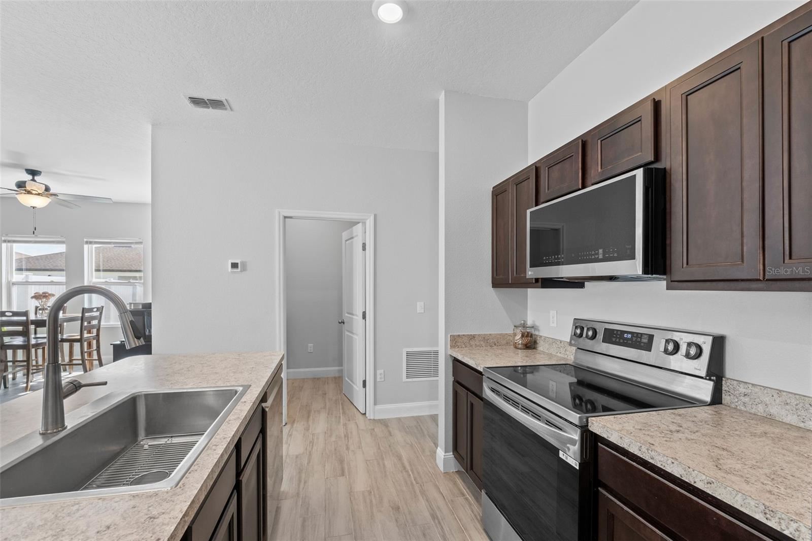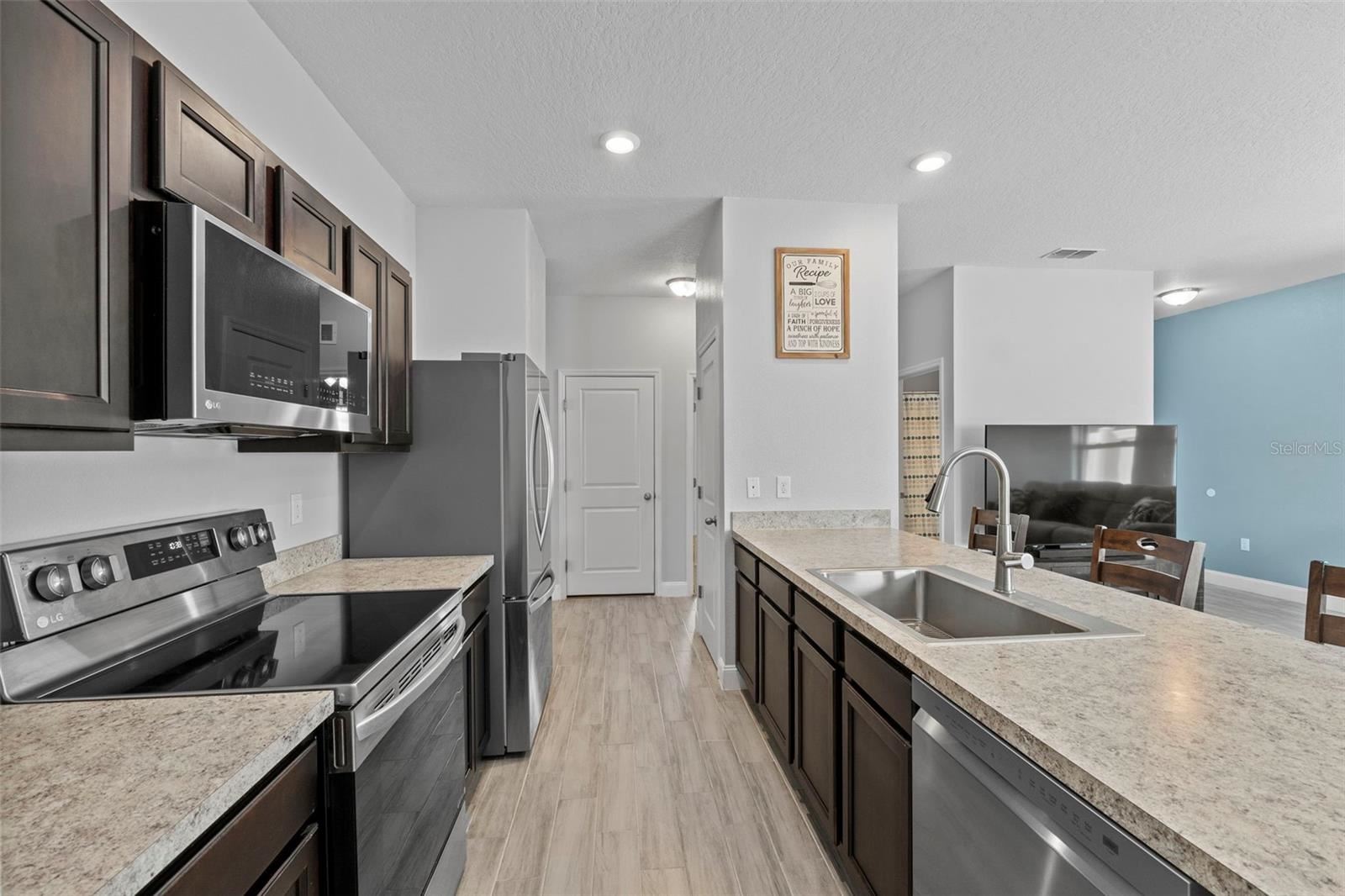 Discover modern comfort at 366 Eaglecrest Drive, a contemporary and charming 3-bedroom, 2-bathroom home built in 2018 that blends style, function, and everyday ease. Step inside to find a bright open layout with wood-look tile flooring throughout the main living areas, kitchen, and office. The kitchen shines with upgraded appliances and ample cabinetry, flowing seamlessly into the dining and living spaces, perfect for both daily living and entertaining. The spacious primary suite features a walk-in closet and private en-suite bath, while thoughtful details like gutters and a Ring doorbell system add extra peace of mind. A two-car garage provides additional convenience and storage. Out back, enjoy your fully fenced yard, a private space ideal for pets, play, or relaxing evenings outdoors. Set in a growing Haines City community, this home offers easy access to major highways, shopping, dining, and neighborhood green spaces.