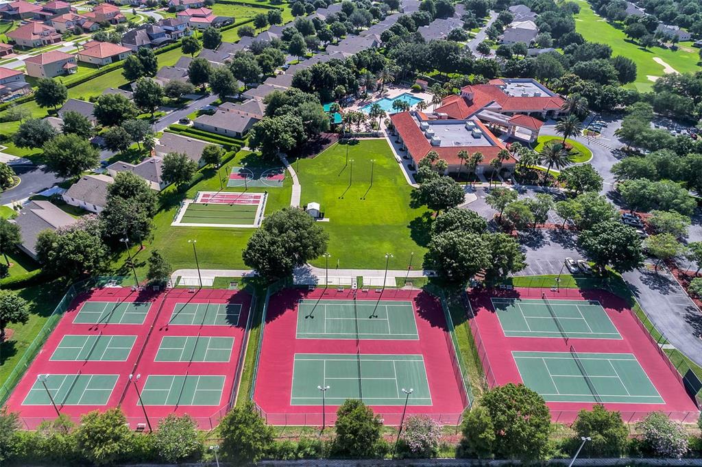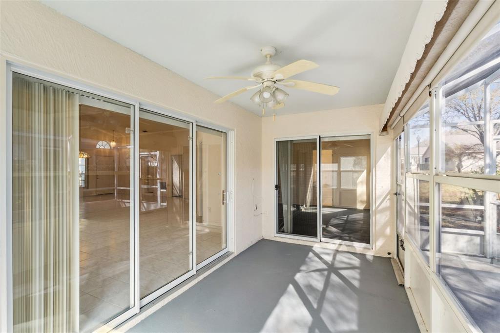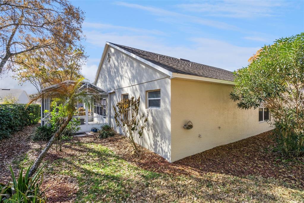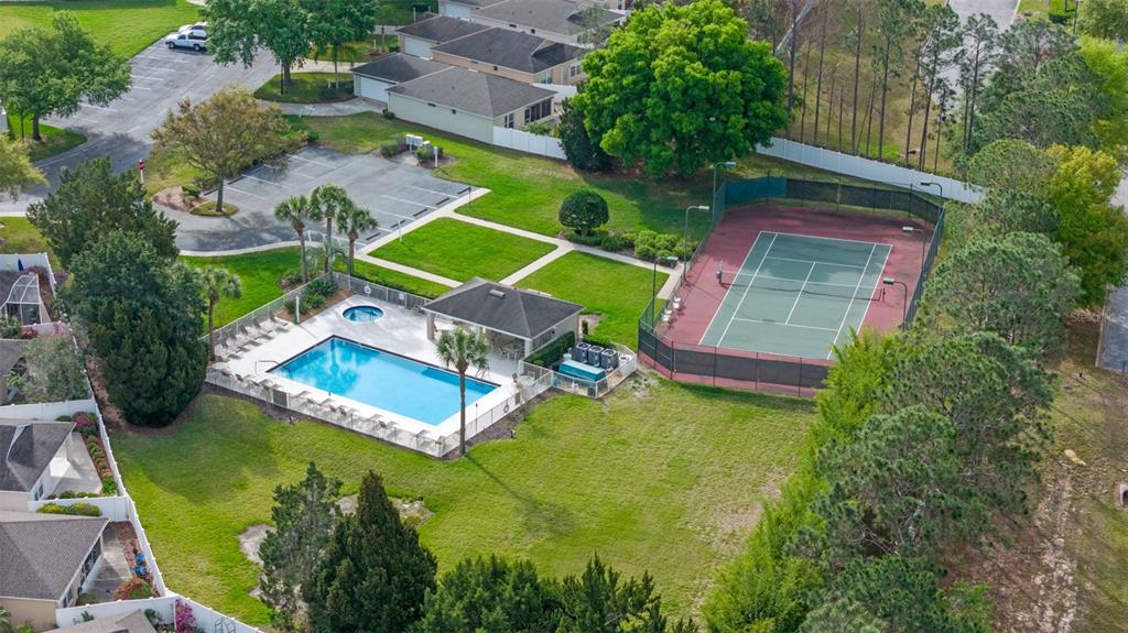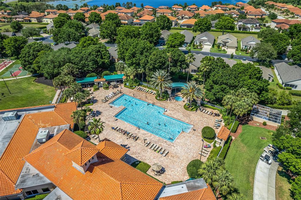 One or more photo(s) has been virtually staged. Welcome to this well maintained one story home on a corner lot in the Brighton neighborhood of Kings Ridge, a sought after 55+ guard gated golf community in Clermont known for its active, resort style lifestyle. This 2 bedroom, 2 bath home with a versatile den features a desirable split floor plan offering both comfort and privacy. A spacious great room at the entry creates an inviting living and dining space, while a separate family room off the kitchen provides an additional gathering area and opens to the lanai, making the layout ideal for everyday living and entertaining. Tile and laminate flooring run throughout for easy care. The primary suite is privately located overlooking the backyard and includes a large walk in closet and en suite bath. The secondary bedroom and den are positioned together, making the den perfect for a home office, hobby room, or guest space. Enjoy Florida living year round from the glass enclosed lanai and the screened patio. The two car garage offers extra space for a golf cart, ideal for enjoying the community and nearby conveniences. Kings Ridge residents enjoy an exceptional array of amenities including multiple pools, two golf courses, tennis, pickleball, fitness center, billiards, crafts, shows and events, clubs for a wide range of interests, golf club dining options, and a full social calendar, all just minutes from shopping, dining, medical facilities, and major roadways.