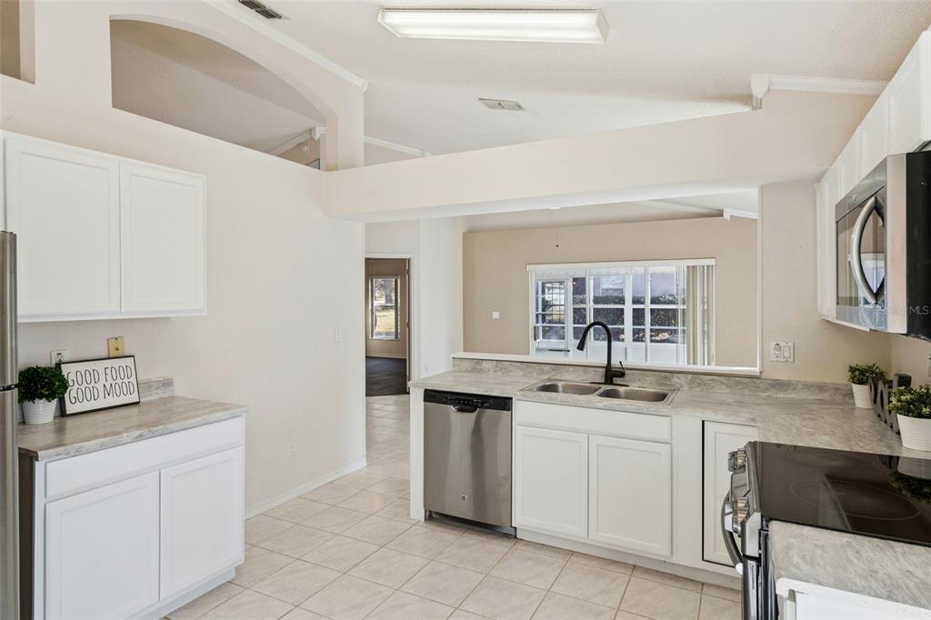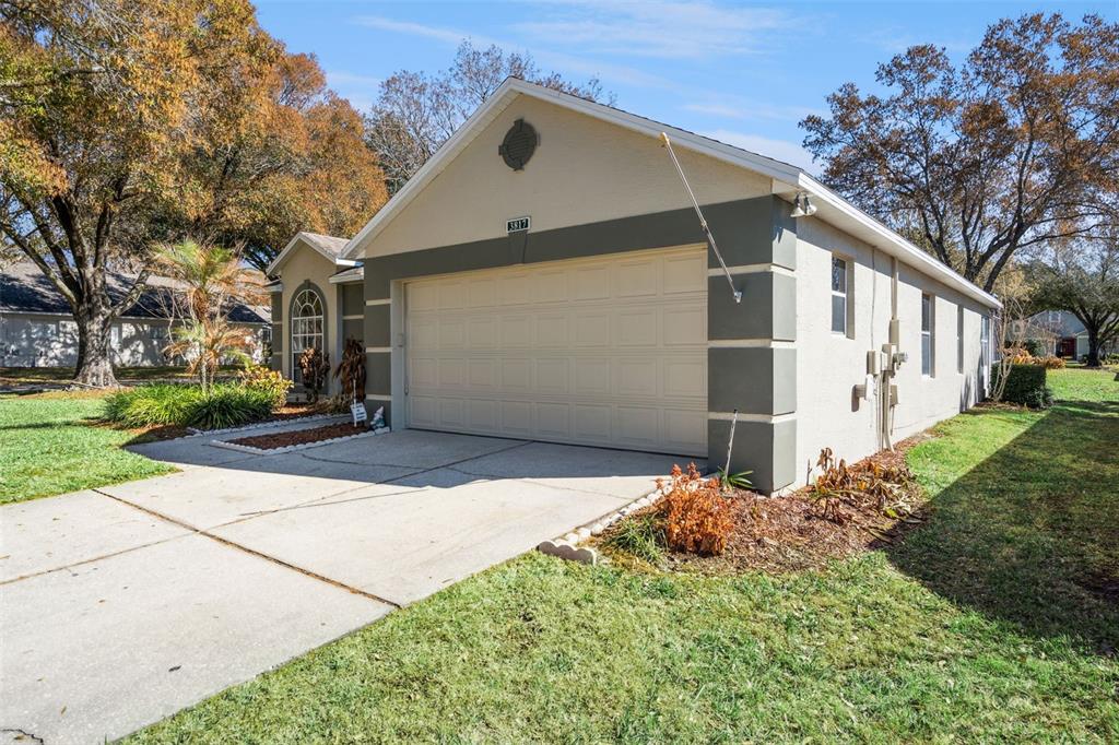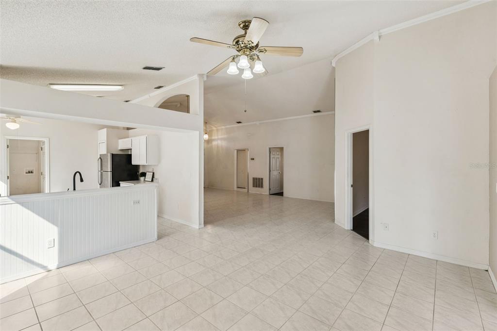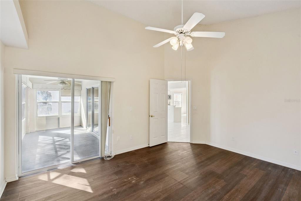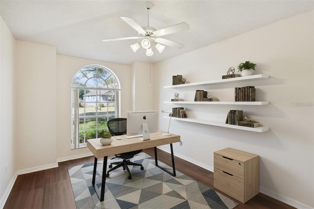 One or more photo(s) has been virtually staged. Welcome to this well maintained one story home on a corner lot in the Brighton neighborhood of Kings Ridge, a sought after 55+ guard gated golf community in Clermont known for its active, resort style lifestyle. This 2 bedroom, 2 bath home with a versatile den features a desirable split floor plan offering both comfort and privacy. A spacious great room at the entry creates an inviting living and dining space, while a separate family room off the kitchen provides an additional gathering area and opens to the lanai, making the layout ideal for everyday living and entertaining. Tile and laminate flooring run throughout for easy care. The primary suite is privately located overlooking the backyard and includes a large walk in closet and en suite bath. The secondary bedroom and den are positioned together, making the den perfect for a home office, hobby room, or guest space. Enjoy Florida living year round from the glass enclosed lanai and the screened patio. The two car garage offers extra space for a golf cart, ideal for enjoying the community and nearby conveniences. Kings Ridge residents enjoy an exceptional array of amenities including multiple pools, two golf courses, tennis, pickleball, fitness center, billiards, crafts, shows and events, clubs for a wide range of interests, golf club dining options, and a full social calendar, all just minutes from shopping, dining, medical facilities, and major roadways.
